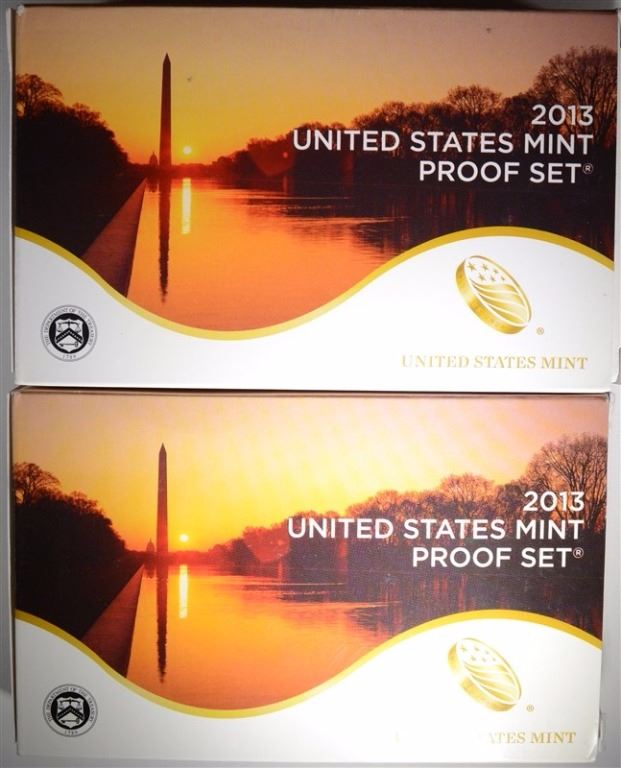 (2) 2013 US Proof Sets in Original Packaging ESTIMATE $90 - $100.