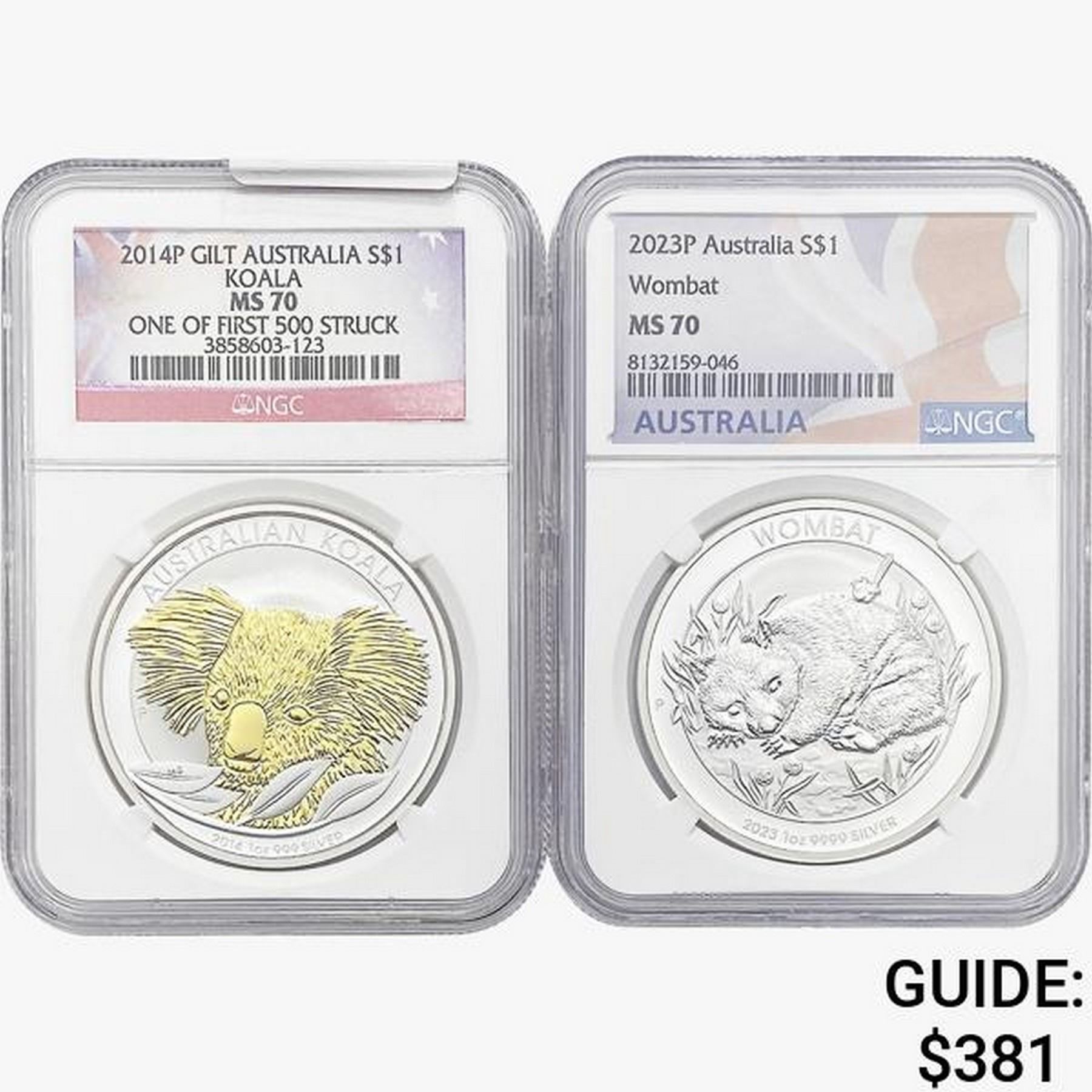 [2]2014-2023 1oz Silver Australia $1 NGC MS70