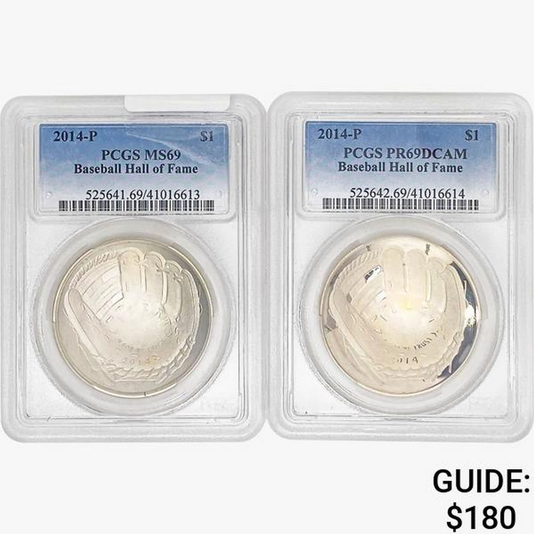 [2]2014-P 0.85oz Silver $1-Baseball HOF PCGS PR68