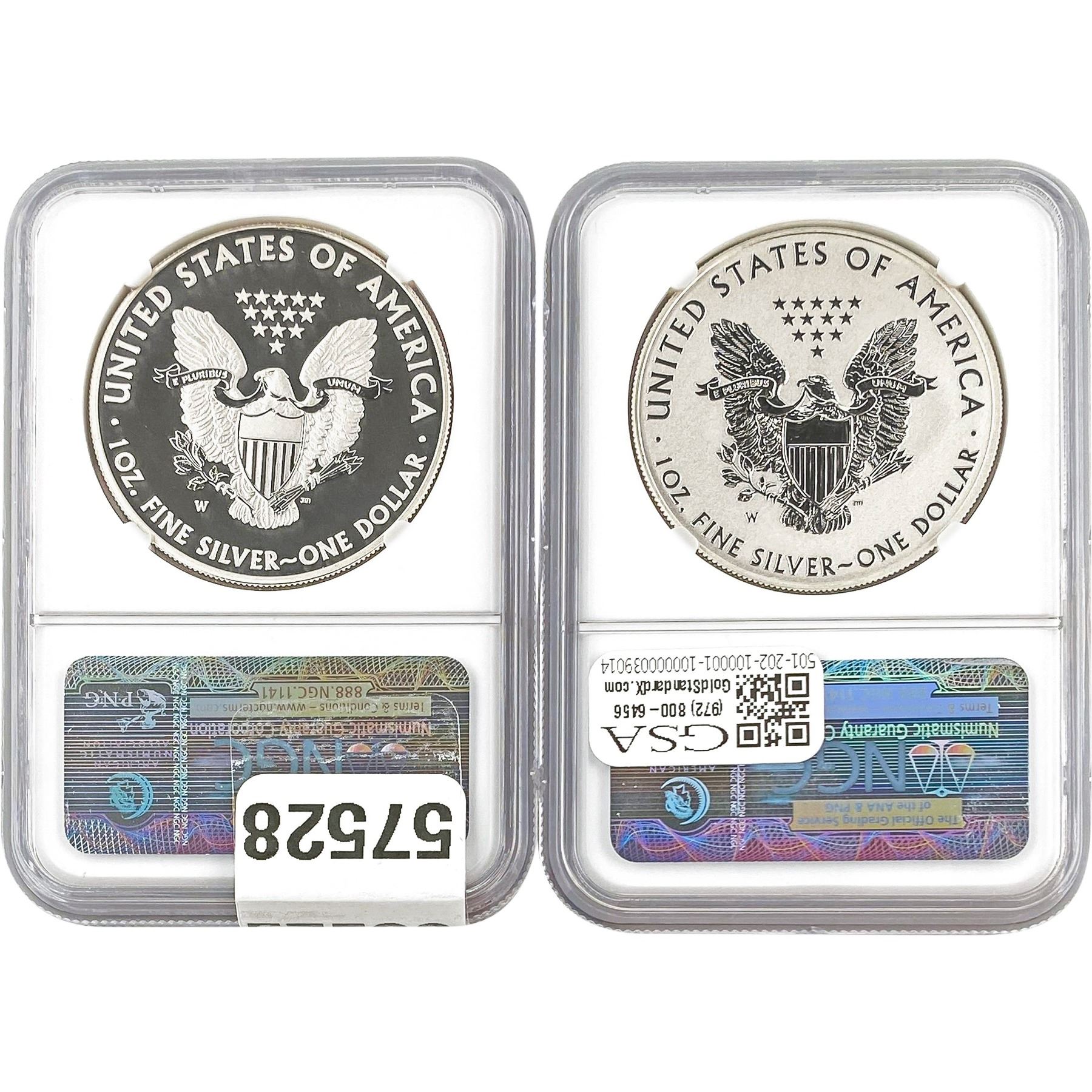 e. Coins sold referencing a third-party grading service are sold “AS IS” without any express or implied warranty, except for a guarantee by GSA that they are genuine. Removal or alteration of the holder, voids all of Bidder’s claims concerning that Product. Certain warranties may be available from the grading services and Bidders are referred to them for further details: Numismatic Guaranty Corporation (NGC), PO Box 4776, Sarasota, FL 34230, www.ngccoin.com/services/writtenguarantee.asp; Professional Coin Grading Services (PCGS), PO Box 9458, Newport Beach, CA 92658, www.pcgs.com/guarantee.html; ANACS, 6555 S. Kenton St., Ste. 303, Englewood, CO 80111; and Independent Coin Grading Co. (ICG), 7901 East Bellview, Ave., Suite 50, Englewood, CO 80111.