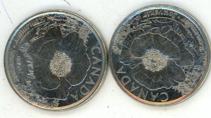 (2)2015 "Remember Souvenir" 25 Cent Coins Poppy Design