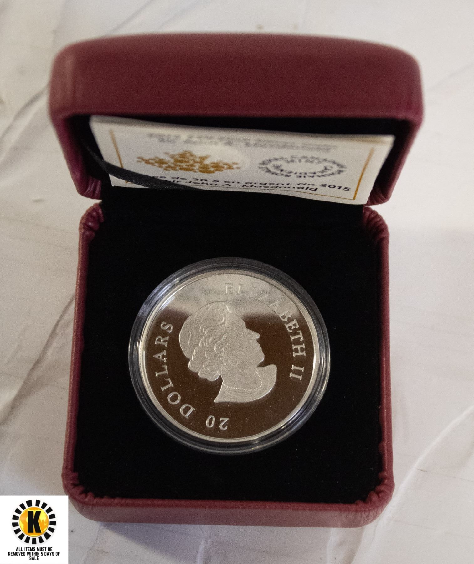 2)2015 SILVER $20 JOHN A MACDONALD COIN