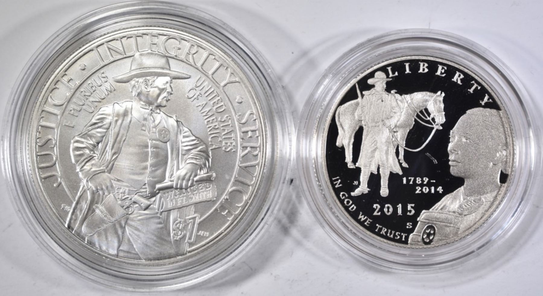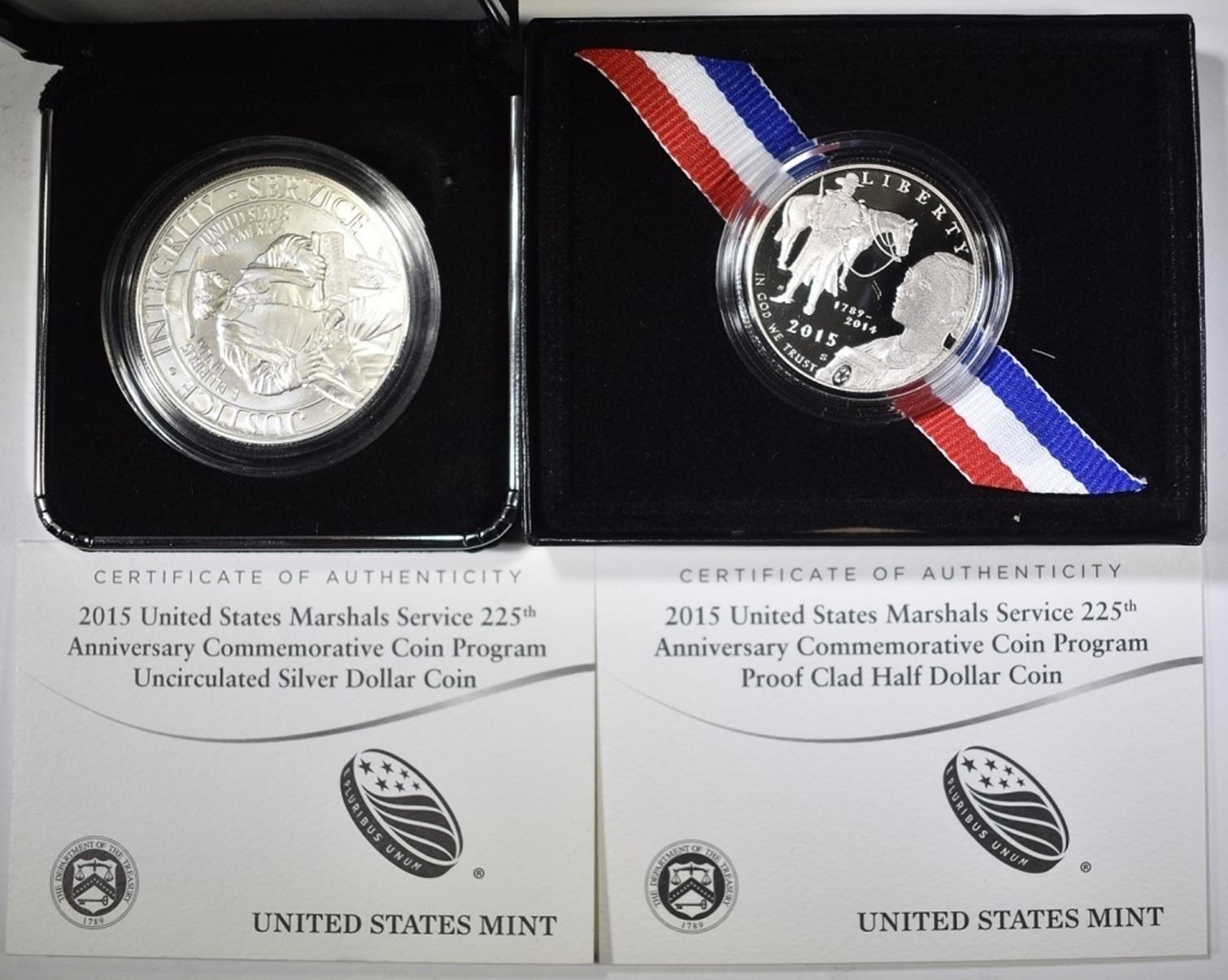 1-MINT SILVER DOLLAR & 1-PROOF CLAD HALF-DOLLAR ESTIMATE $75 - $85.