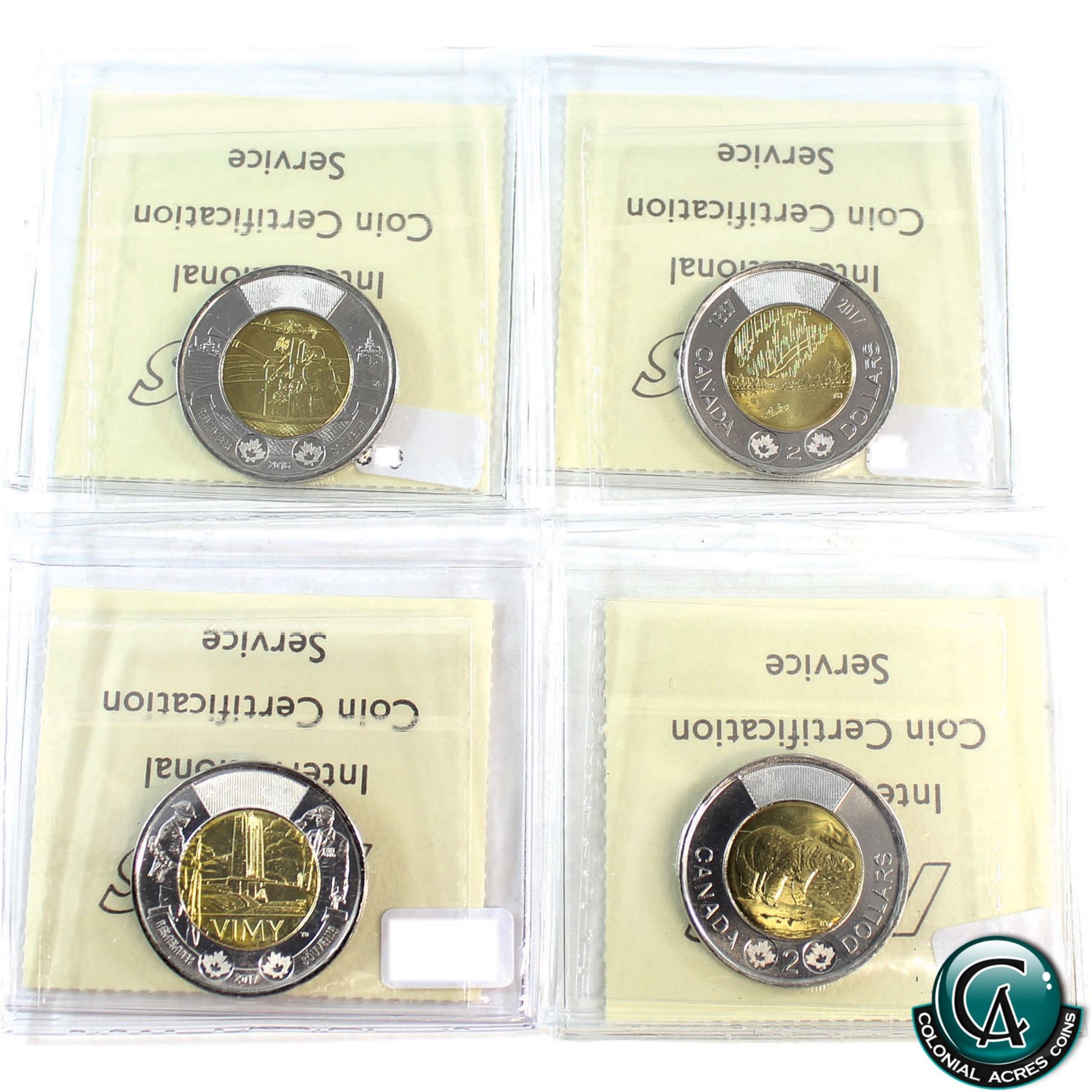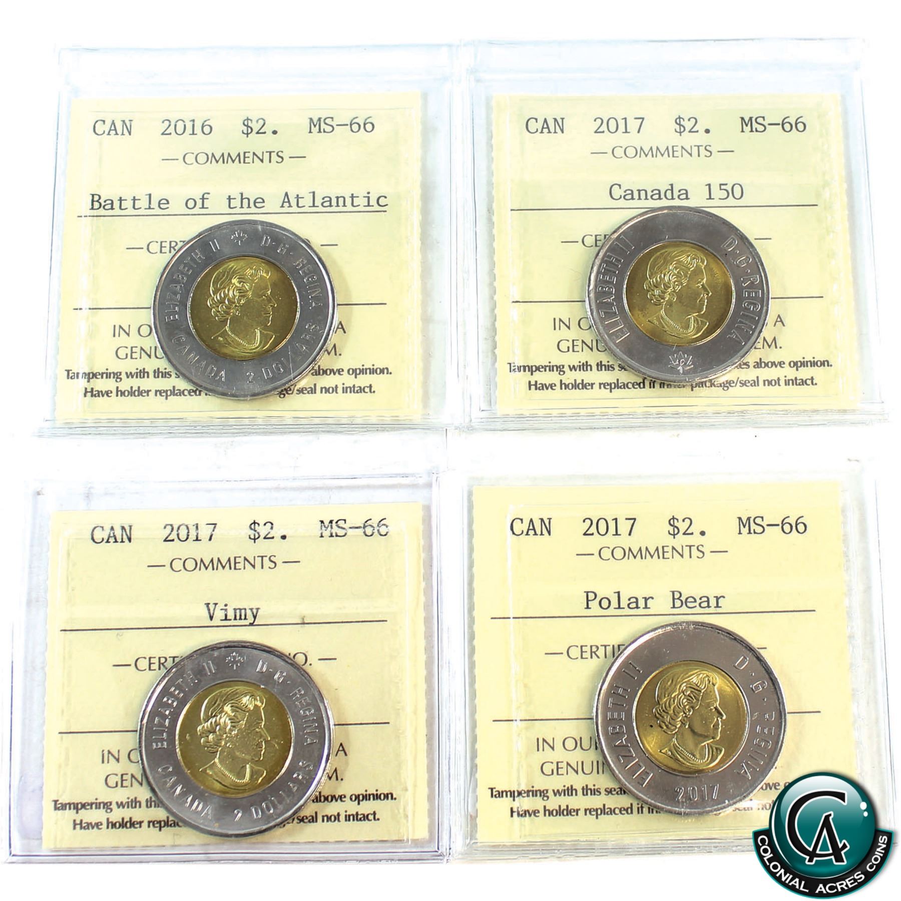 $2 2016 Battle of the Atlantic, 2017, 2017 Vimy, & 2017 Canada 150th ICCS Certified MS-66. 4pcs.