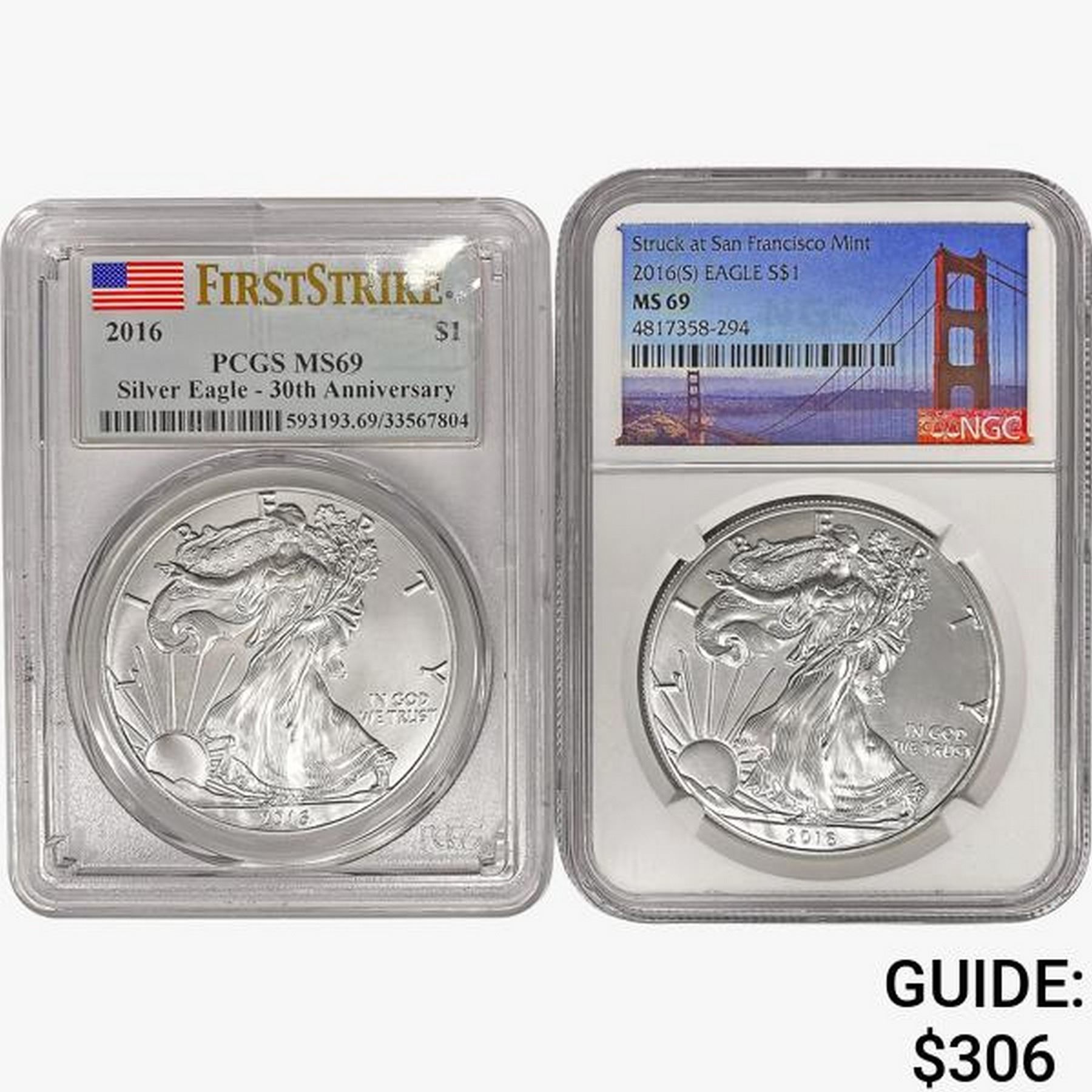[2] 2016 Silver Eagle NGC,PCGS MS69
