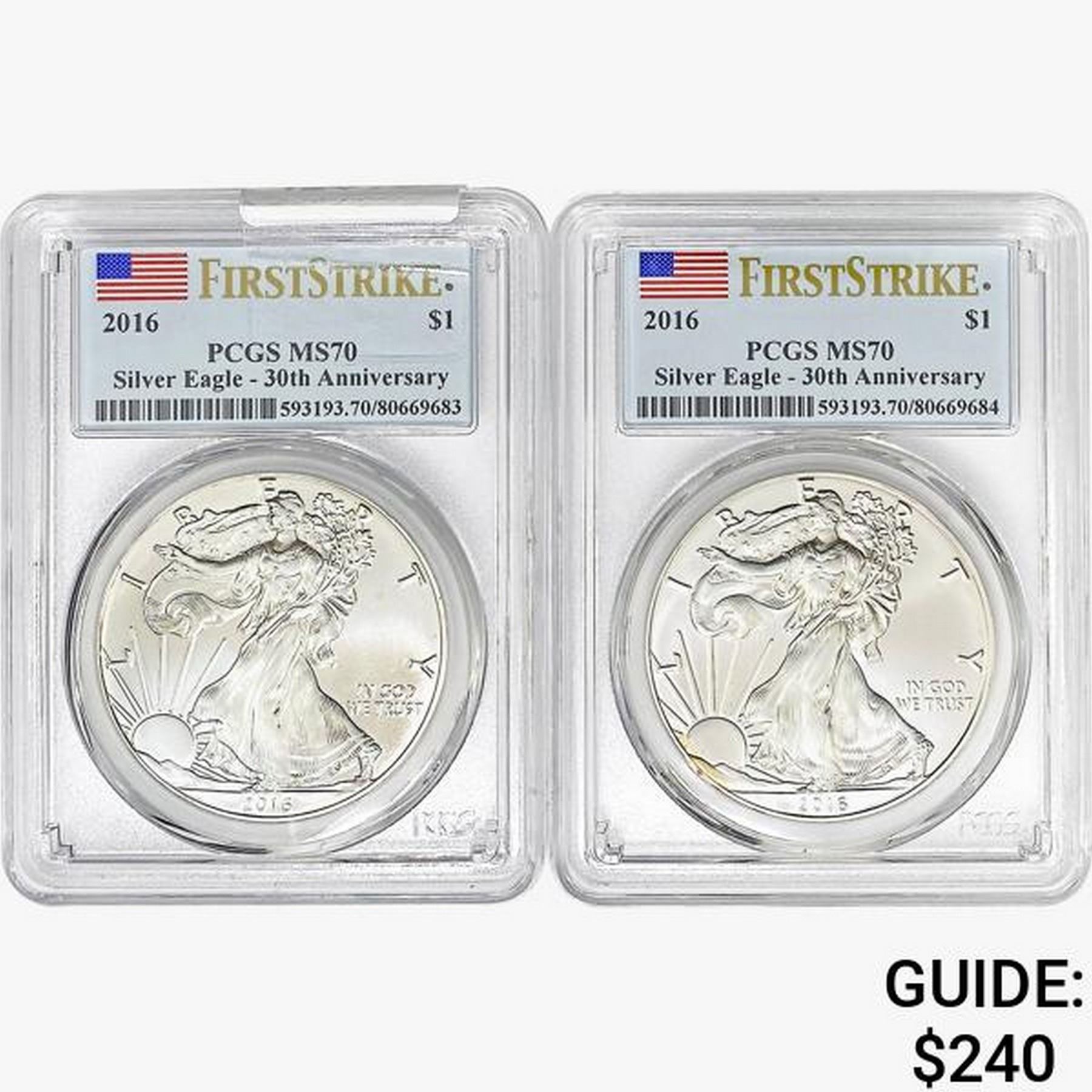 [2] 2016 Silver Eagle PCGS MS70