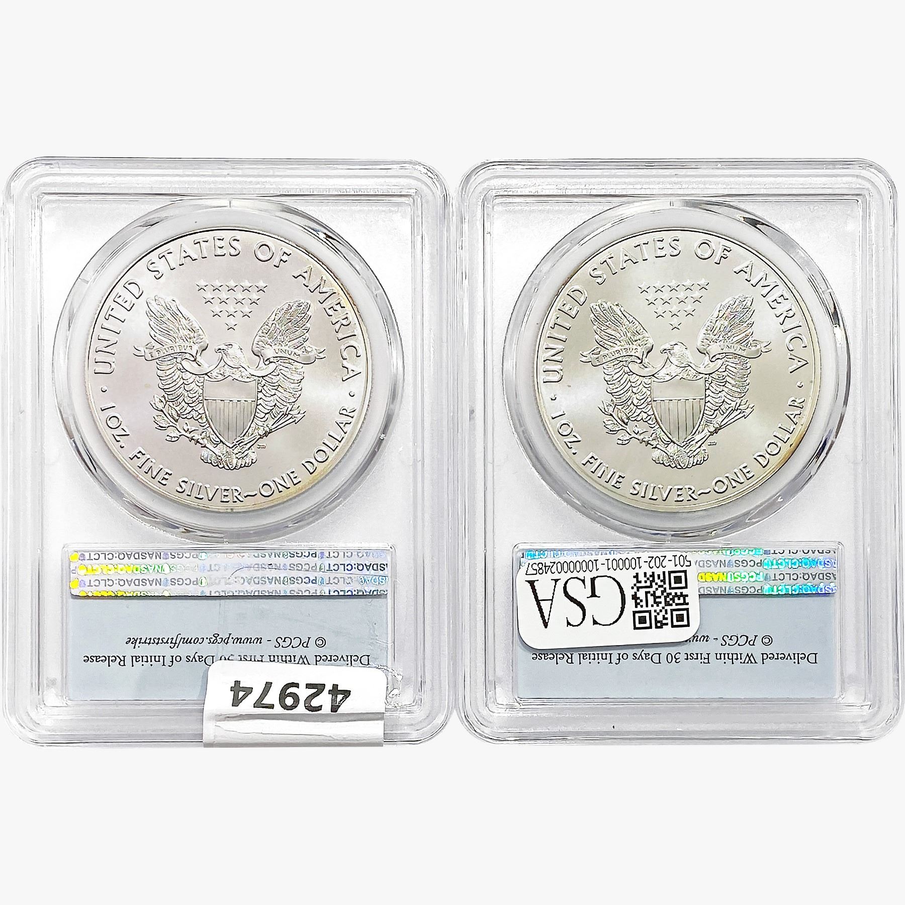 e. Coins sold referencing a third-party grading service are sold “AS IS” without any express or implied warranty, except for a guarantee by GSA that they are genuine. Removal or alteration of the holder, voids all of Bidder’s claims concerning that Product. Certain warranties may be available from the grading services and Bidders are referred to them for further details: Numismatic Guaranty Corporation (NGC), PO Box 4776, Sarasota, FL 34230, www.ngccoin.com/services/writtenguarantee.asp; Professional Coin Grading Services (PCGS), PO Box 9458, Newport Beach, CA 92658, www.pcgs.com/guarantee.html; ANACS, 6555 S. Kenton St., Ste. 303, Englewood, CO 80111; and Independent Coin Grading Co. (ICG), 7901 East Bellview, Ave., Suite 50, Englewood, CO 80111.