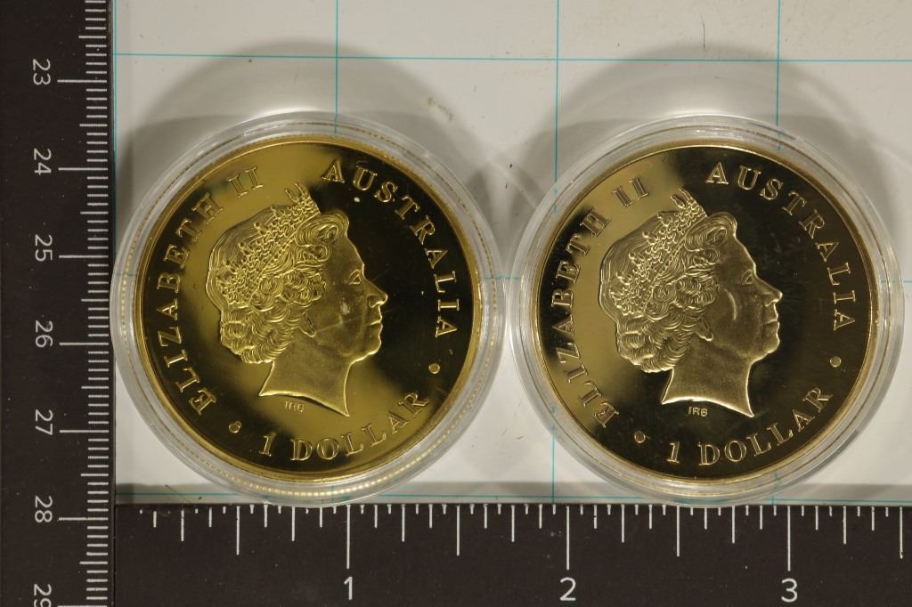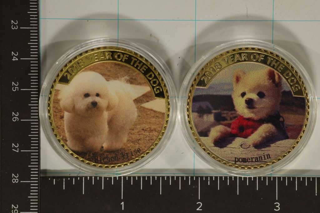 COLOR ON ONE SIDE. "POMERANIAN" AND "BICHON FRISE", BOTH IN HARD PLASTIC CAPSULES, PROOF LOOKING