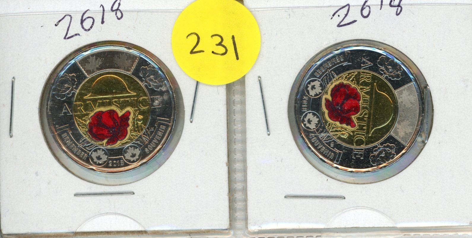 (2) 2018 Canada $2 Armistice Colored Uncirculated Coin.