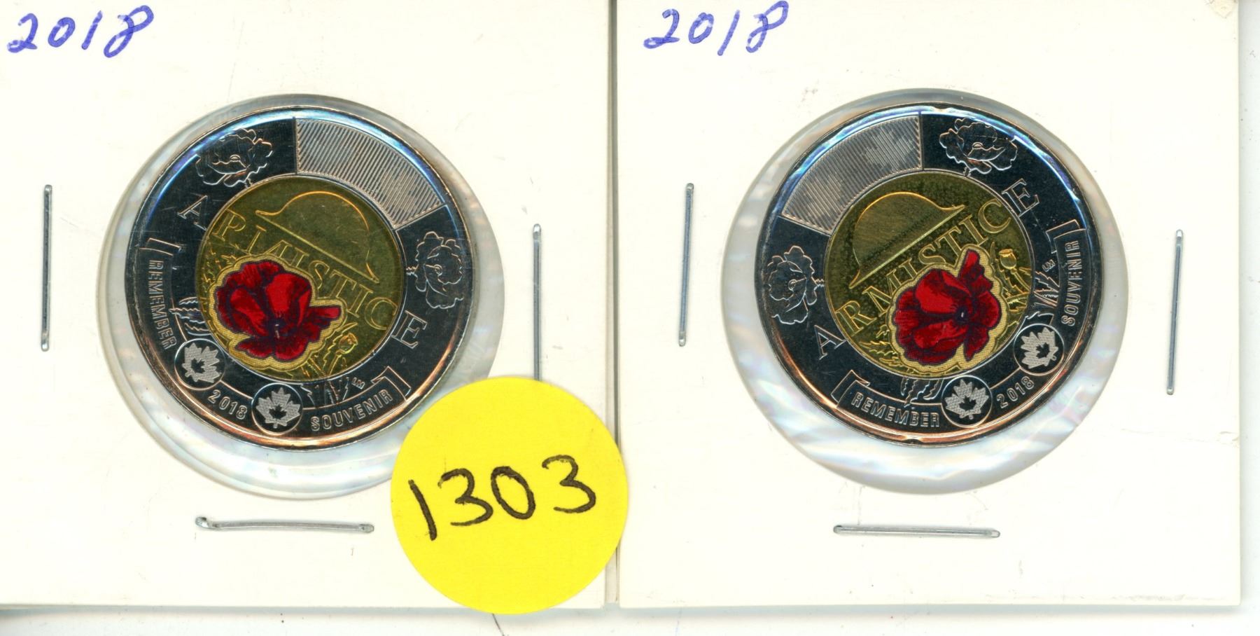 (2) 2018 Canadian Armistice Remembrance Day Two Dollar Coins.