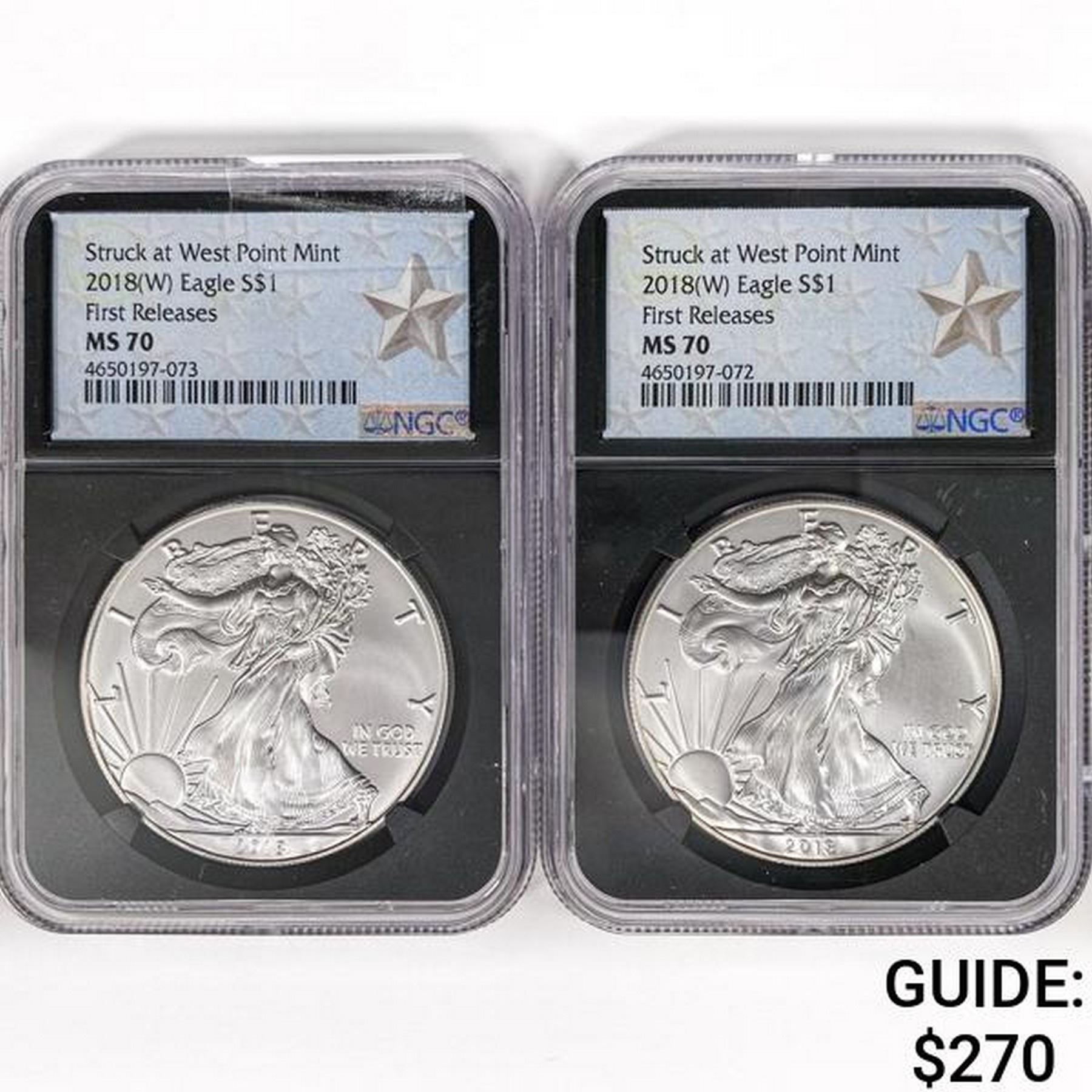 (2) 2018-W American Silver Eagle NGC MS70