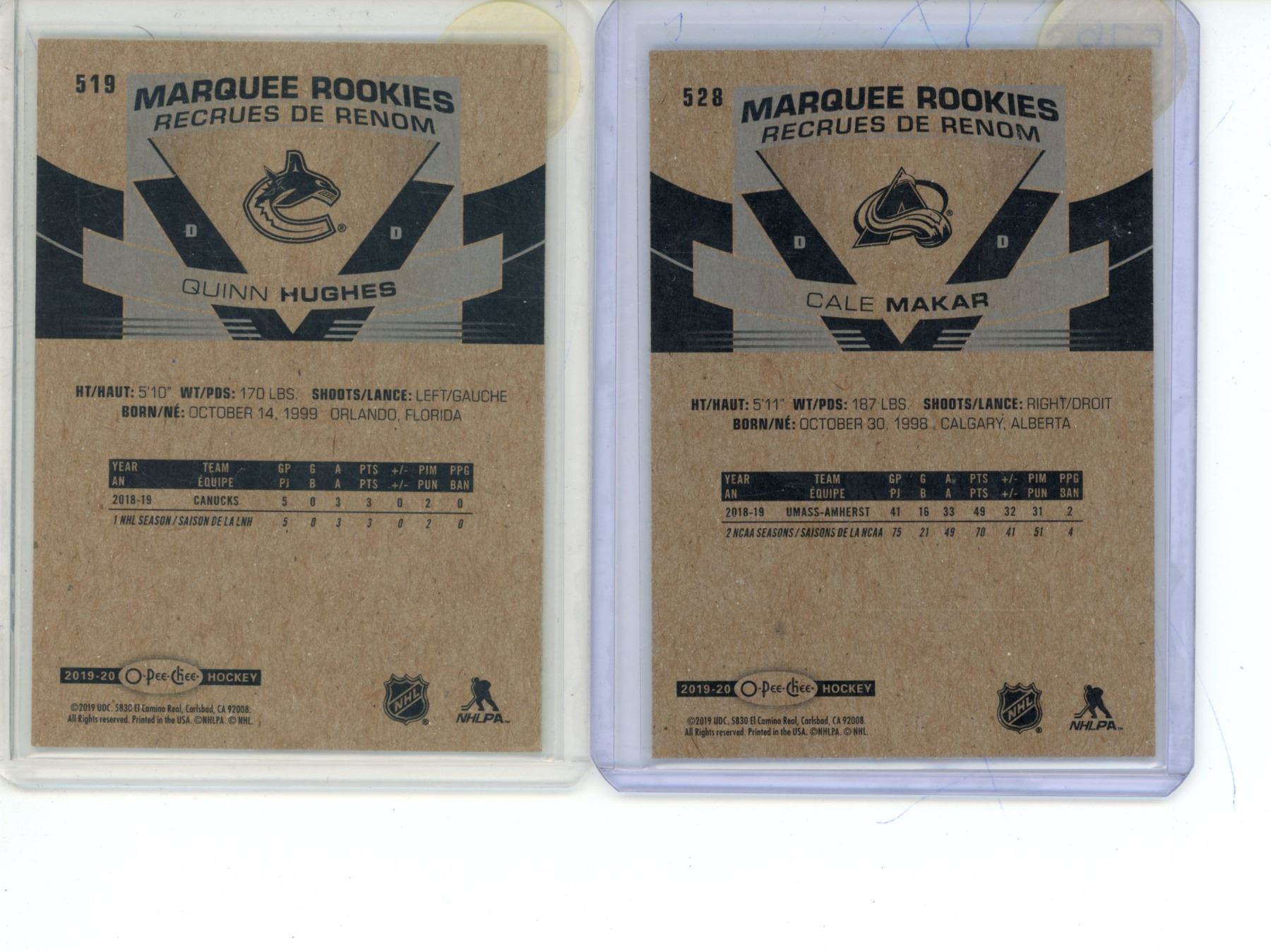 (2) 2019-20 Marquee Rookie Cards Makar and Hughes
