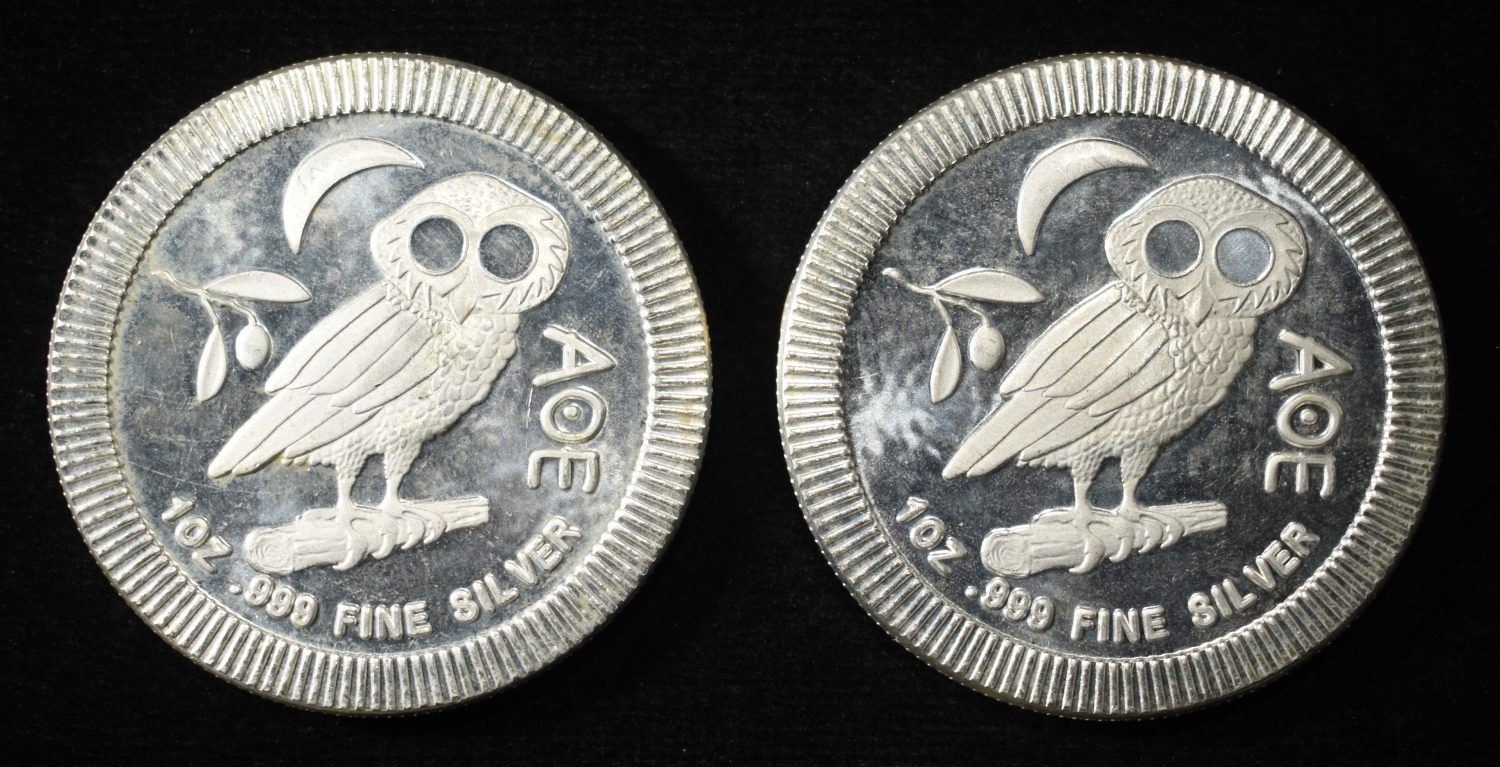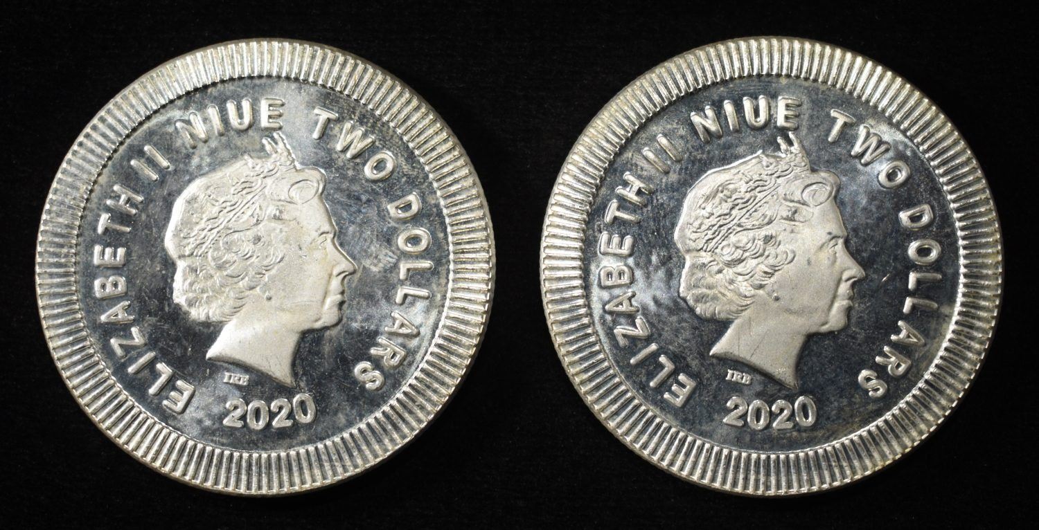 (2) 2020 1 OZ .999 SILVER NIUE OWL ROUNDS