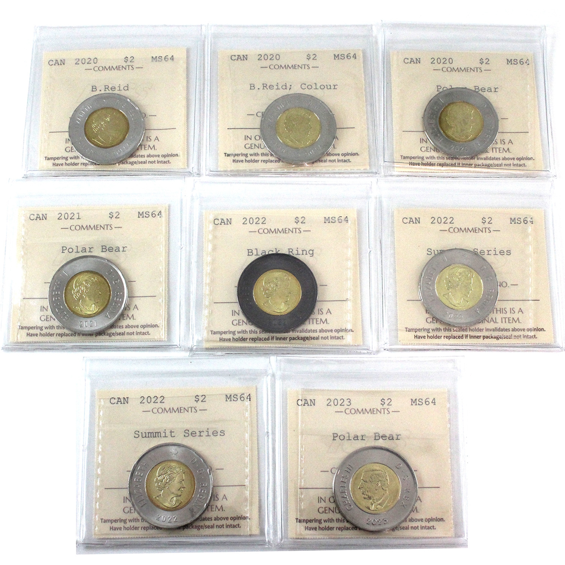 INCLUDES: 2020 Bill Reid, 2020 Bill Reid Colour, 2020, 2021, 2022 Black Ring, 2022 Summit Series, 2022 Summit Series Colour & 2023. 8pcs.