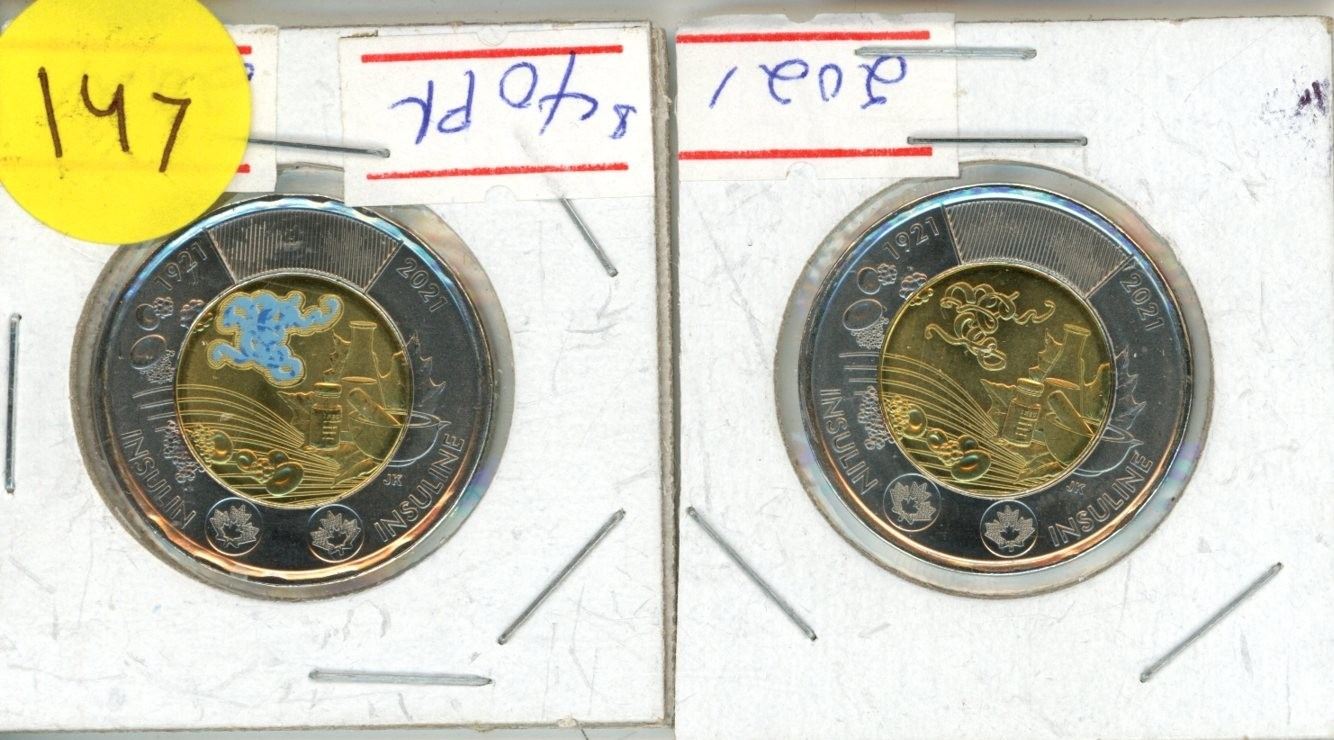 (2) 2021 100th Anniversary of Discovery of Insulin 2 Dollar Coins.