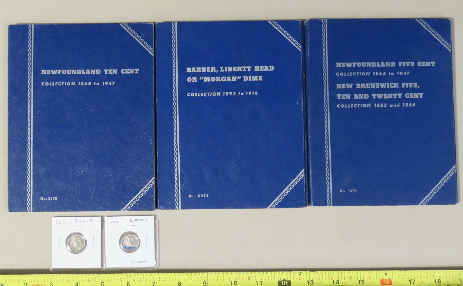 2) 2021 Bluenose Centennial Canada Dimes + 3 empty Coin collection books