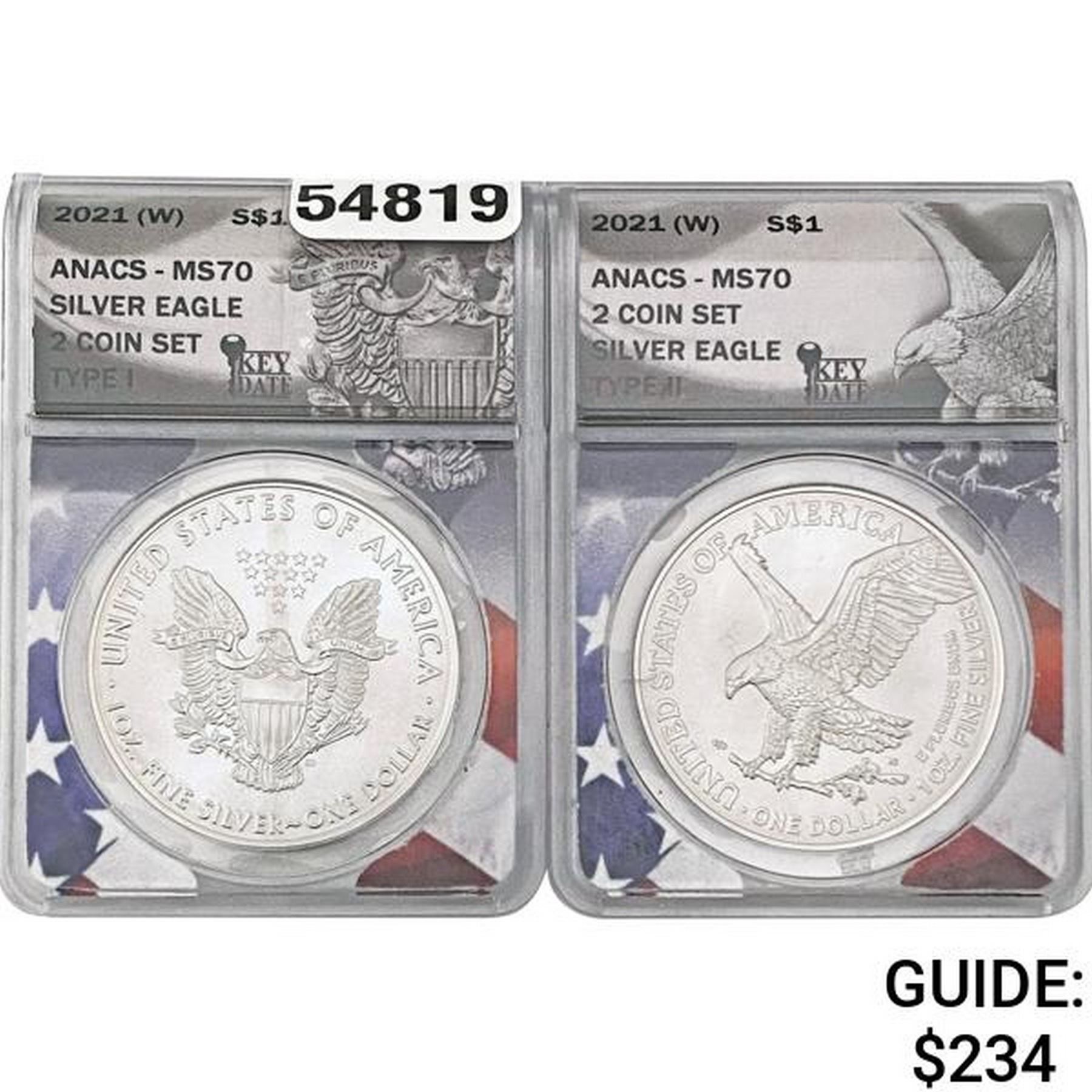[2]2021-W Silver Eagle ANACS MS70 Type I/II