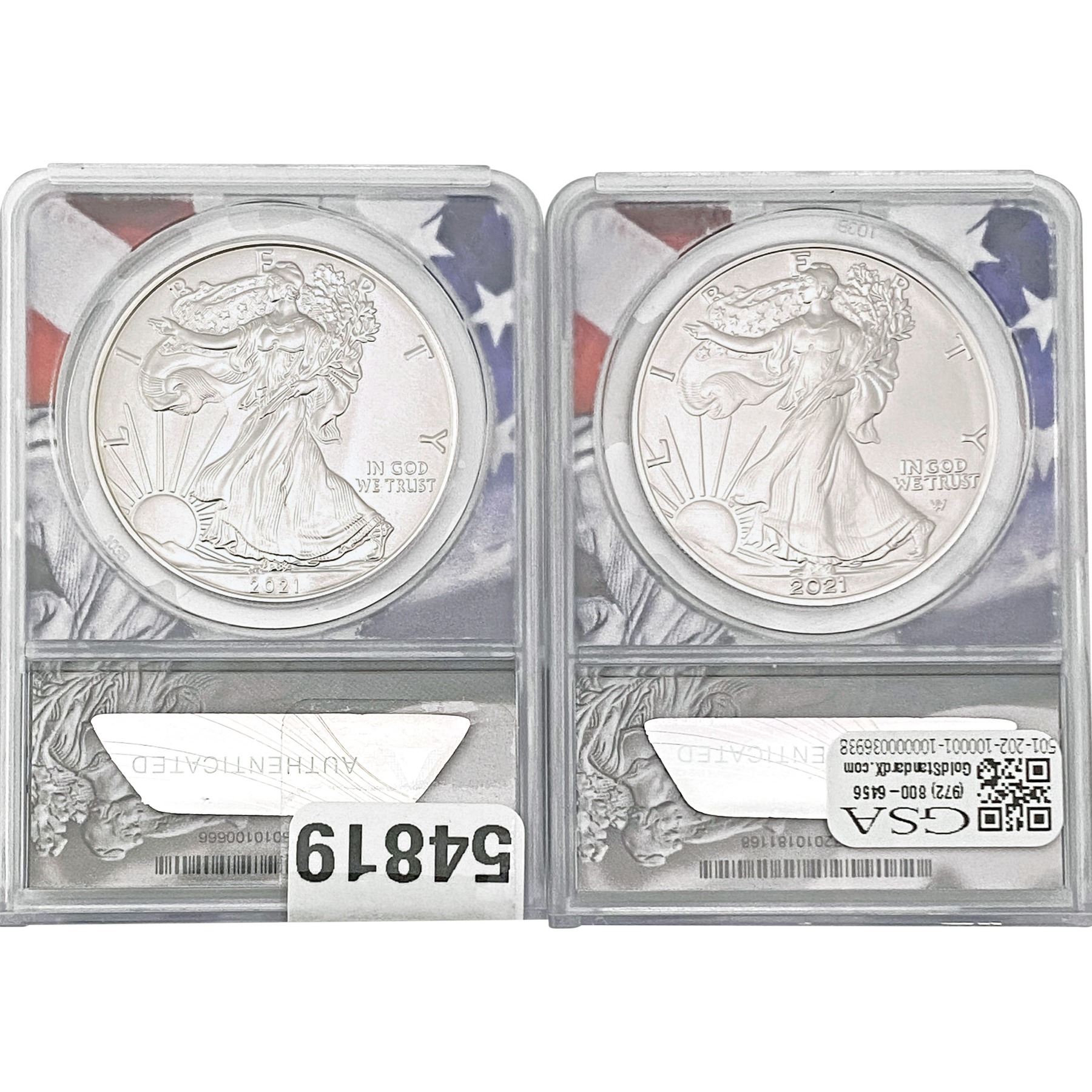 e. Coins sold referencing a third-party grading service are sold “AS IS” without any express or implied warranty, except for a guarantee by GSA that they are genuine. Removal or alteration of the holder, voids all of Bidder’s claims concerning that Product. Certain warranties may be available from the grading services and Bidders are referred to them for further details: Numismatic Guaranty Corporation (NGC), PO Box 4776, Sarasota, FL 34230, www.ngccoin.com/services/writtenguarantee.asp; Professional Coin Grading Services (PCGS), PO Box 9458, Newport Beach, CA 92658, www.pcgs.com/guarantee.html; ANACS, 6555 S. Kenton St., Ste. 303, Englewood, CO 80111; and Independent Coin Grading Co. (ICG), 7901 East Bellview, Ave., Suite 50, Englewood, CO 80111.