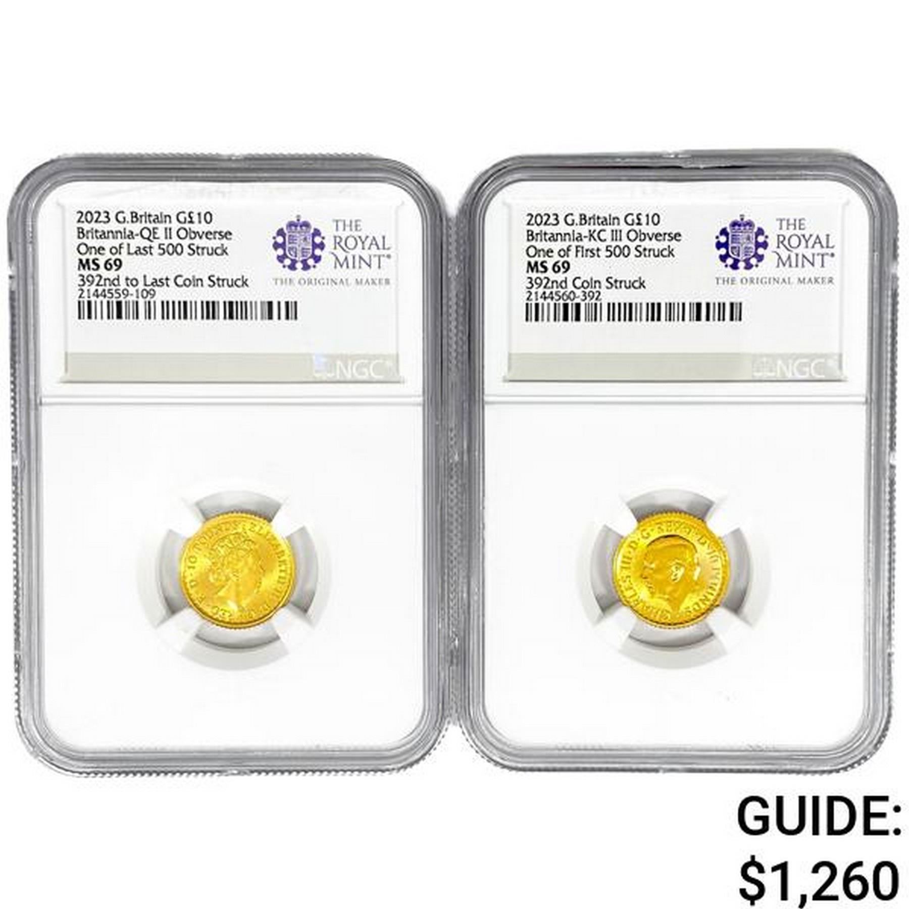 [2] 2023 G.B £10 .10oz. Gold NGC MS69 Q&K OBV 392n