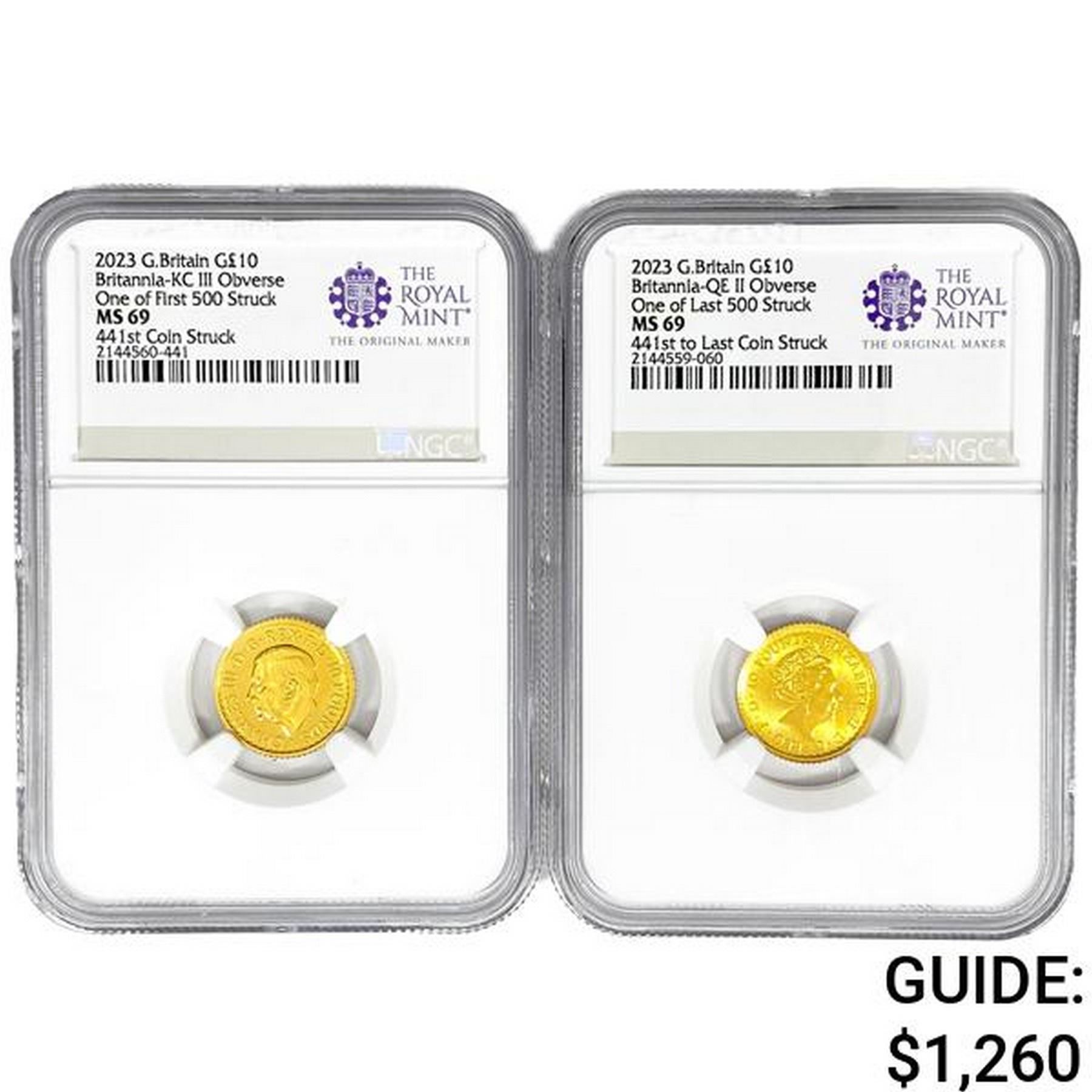[2] 2023 G.B £10 .10oz. Gold NGC MS69 Q&K OBV 441s