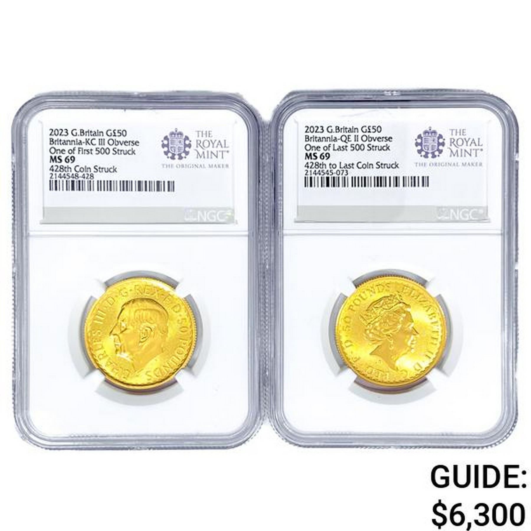 [2] 2023 G.B £50 1/2oz. Gold NGC MS69 Q&K OBV 428t