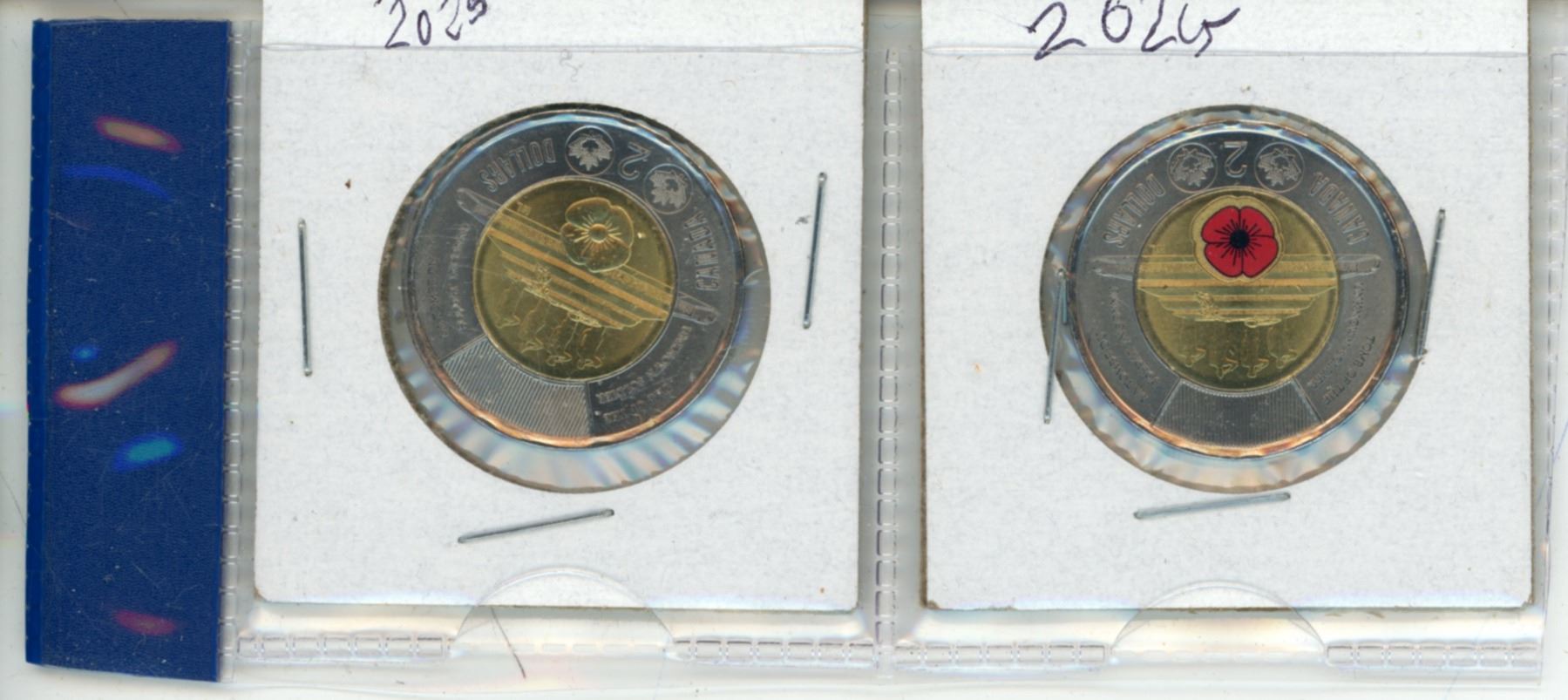 (2) 2025 Two Dollars Canada Commemorative Coin (Remembrance)