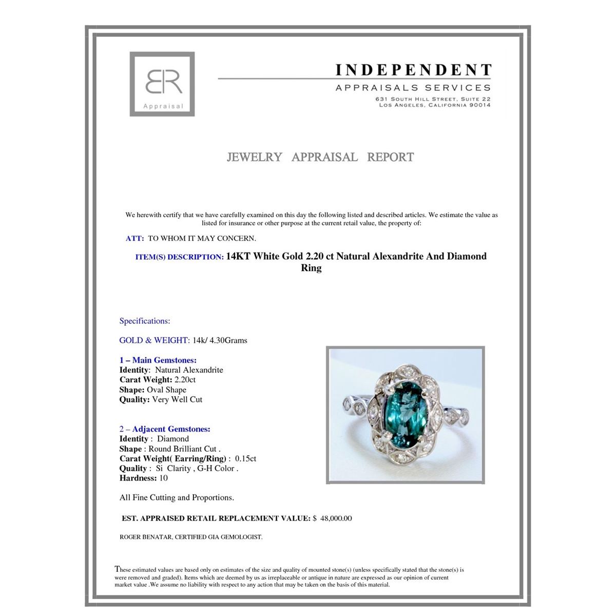 14K WHITE GOLD NATURAL ALEXANDRITE RING:4.30GRAM /NATURAL ALEXANDRITE: 2.20CT/ DIAMOND :0.15CT/#GVR1251