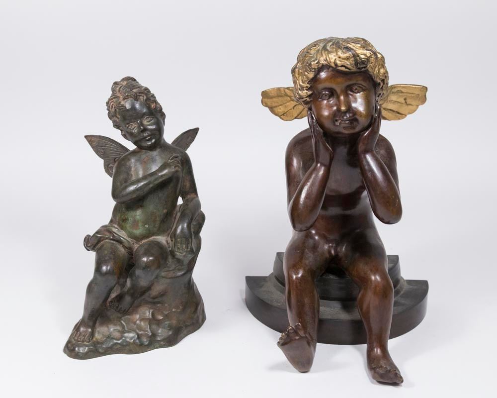 Seated boy and seated female with fairy-like wings. Approx. 11" H and 10" H.