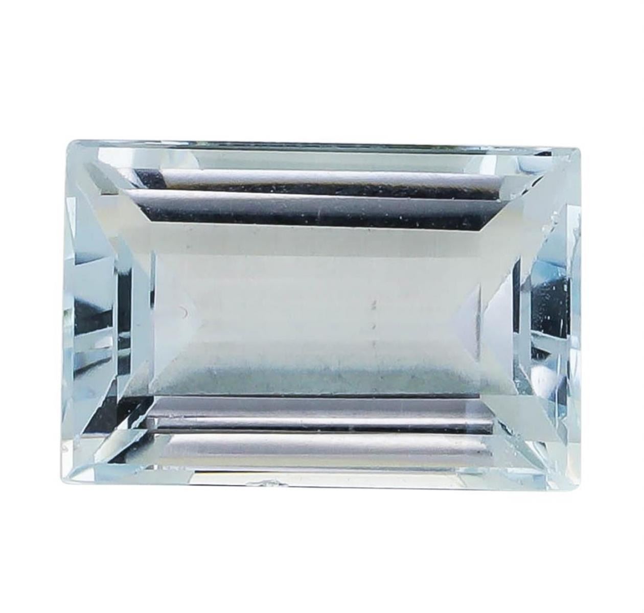 One natural rectangle step cut aquamarine with an exact weight of 2.21ct., clarity is eye clean, slightly grayish greenish blue. Gemological Appraisals Services estimates the retail value at $884 GAS Appraised.