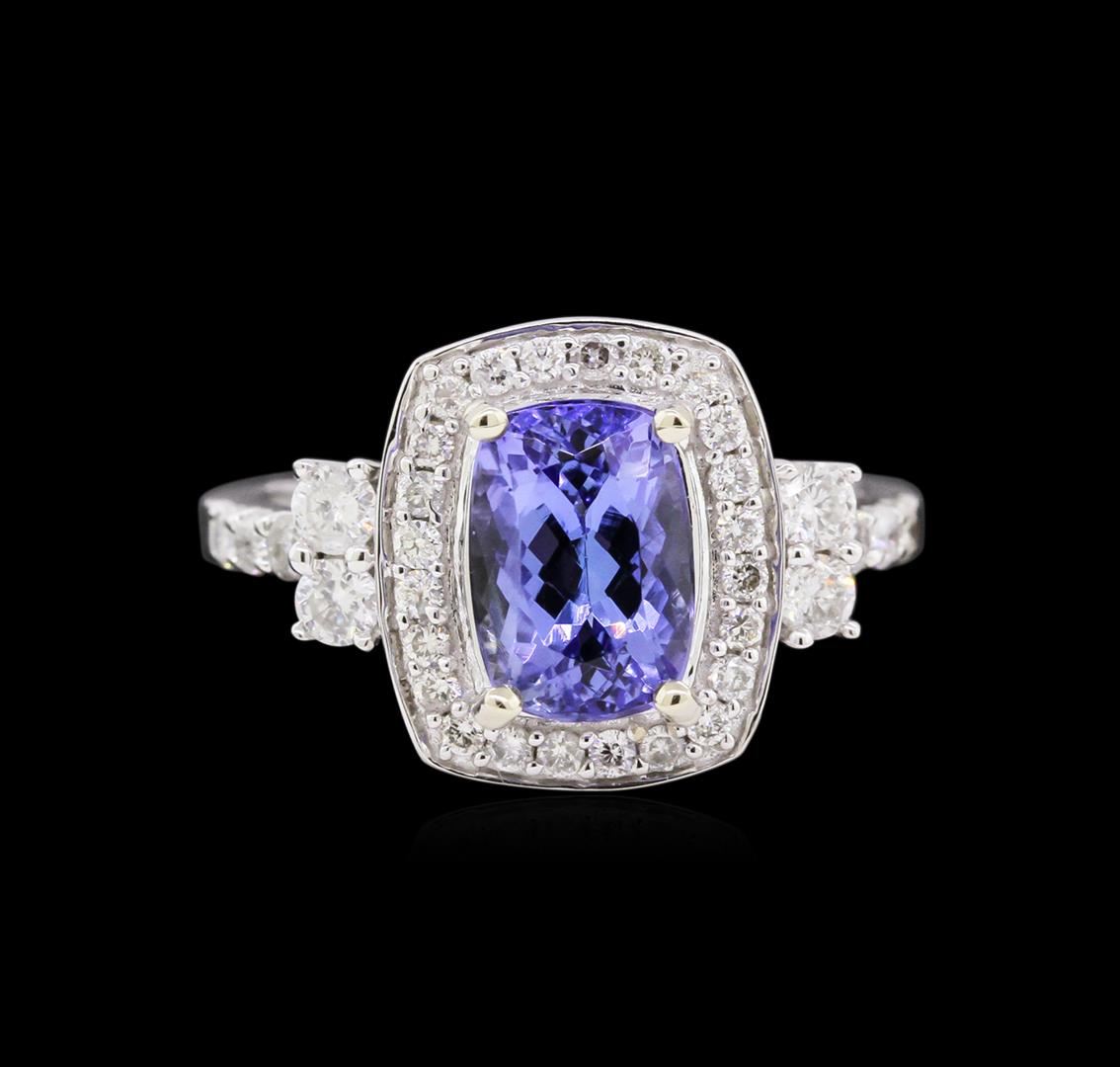 One electronically tested 14KT white gold ladies cast tanzanite and diamond ring with a bright polish finish. Trademark is ORIANNE. Identified with markings of "14K". Condition is new, good workmanship. Containing: One prong set rectangular cushion mixed cut natural tanzanite, measuring 8.50 x 6.00 x 5.00mm, 10%. bulge factor, approximate weight of 2.21ct., clarity is eye clean, type I, medium, very slightly grayish, violetish blue color, (GIA vB 5/3), cut is good. Transmitting light with no distortion, transparent. Graded in the setting. Tanzanite is a very rare gemstone that is only found in the country of Tanzania. Originally discovered in 1967. Tiffany & Company, named the stone Tanzanite. It is found in the Usumburu Mountains that border the Umba Valley of northern Tanzania. Tanzanite occurs in gray, brown, violet, blue, reddish-purple, & green. The gem is interesting because of its exceptional pleochroism. Rotated in different directions a tanzanite will exhibit multiple changes of color. Tanzanite has a low tolerance to ultrasonic cleaning, and should not be cleaned using this method. Thirty-Four prong set round brilliant cut diamonds, measuring 2.60 - 1.20 x 1.14mm (depth est.) approximate total weight of 34 Stones = 0.65ct. Graded in the setting. Clarity: SI-1 to I-1. Color: G - I. Total Weight of Colored Stones 2.21ct. Total Weight of Diamonds 0.65ct. AIG Appraised at $7,975.00.