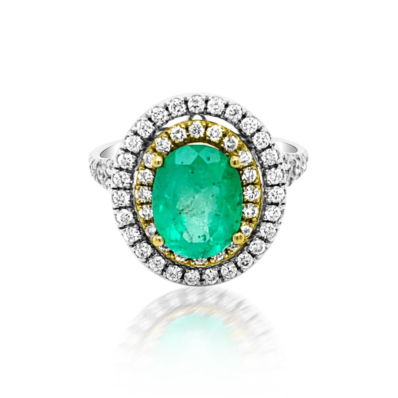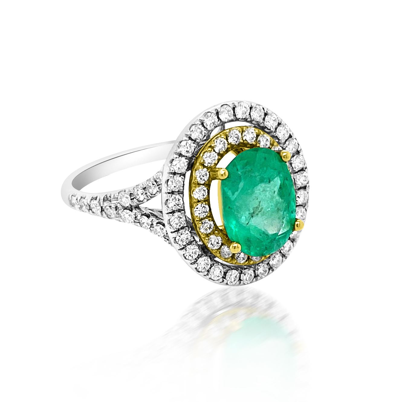 2.21ct Natural Emerald 14K White / Yellow Gold 5.8gm Diamond 0.75ct Ring #PJ11020