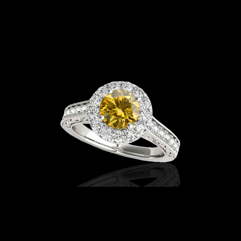 2.22 ctw Certified SI/I Fancy Intense Yellow Diamond Ring 10K White Gold