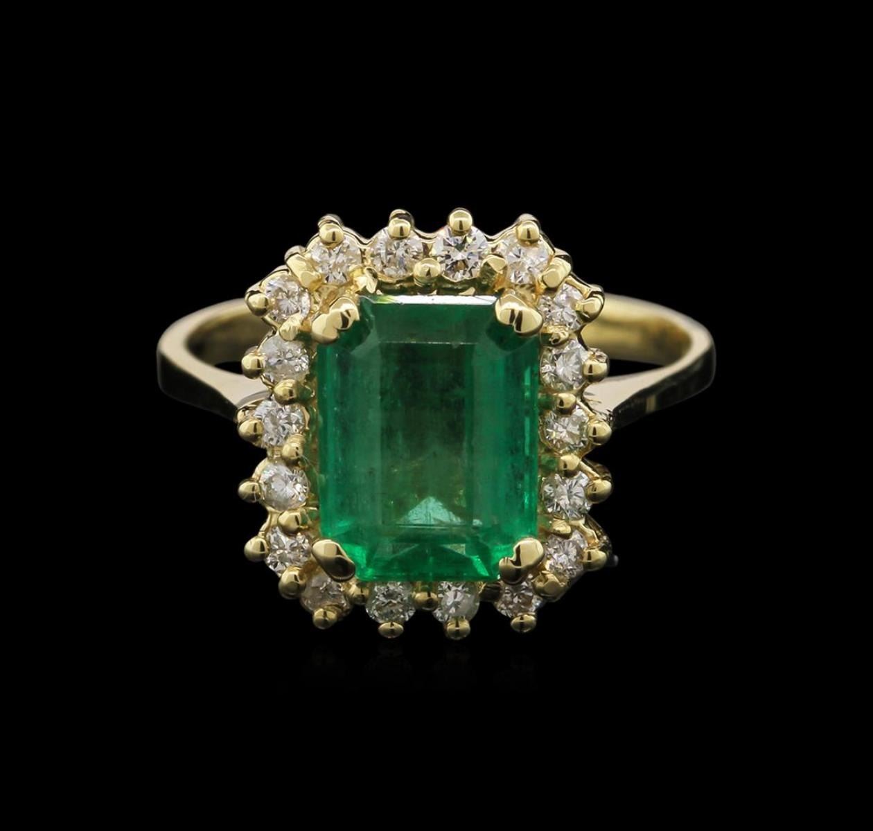 One ring featuring: 14KT yellow gold weighing 3.23 grams containing one emerald center stone with a total weight of 2.22ct and 18 diamonds with a total weight of 0.30ct.