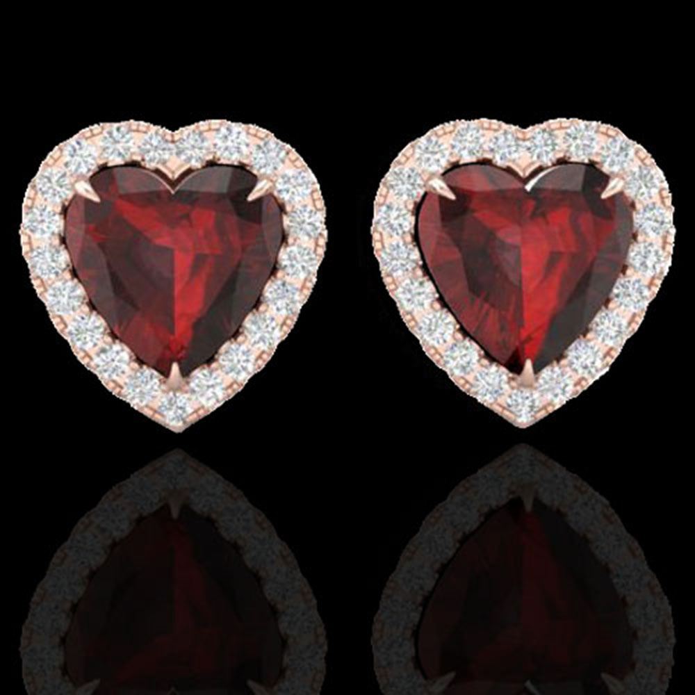 REF-38K2Y - SKU: 21204 ---- 2.22 ctw Garnet & Micro Pave Diamond Earrings Heart 14k Rose Gold