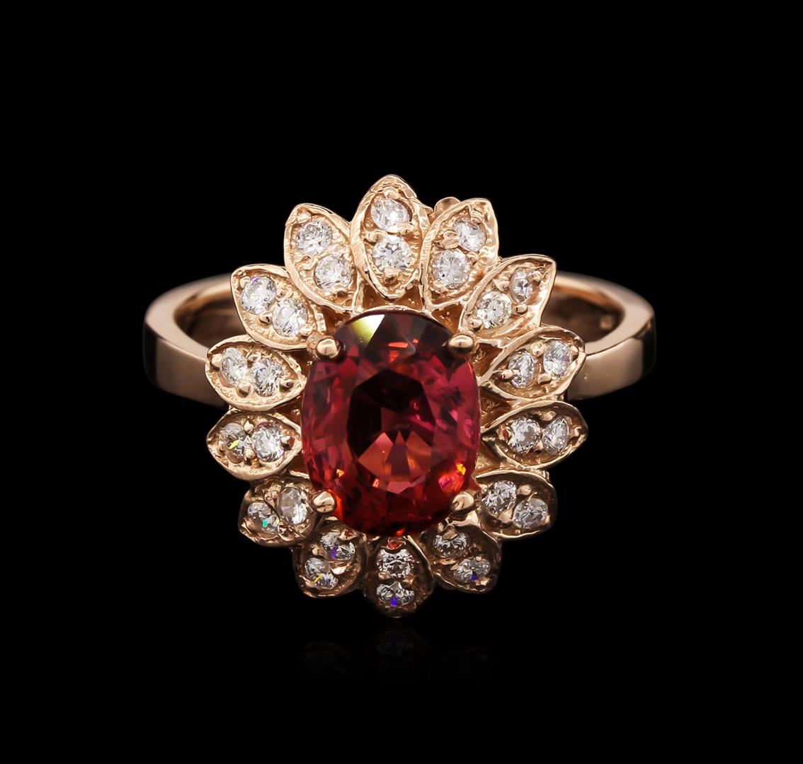 One ring featuring: 14KT rose gold weighing 4.98 grams containing one pink tourmaline with a total weight of 2.22ct and diamonds with a total weight of 0.42ct.