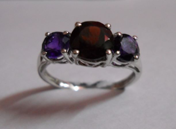 2.220g Ring of Amethyst and Garnet Sterling Silver