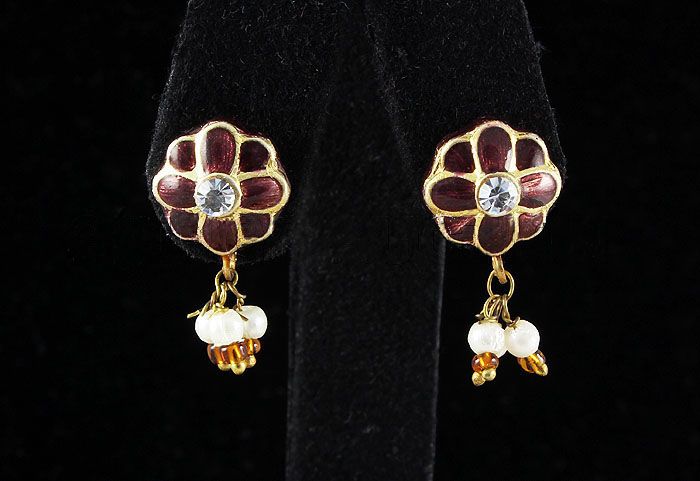 2.22GRAM INDIAN HANDMADE LAKH STUD FASHION EARRING **|**|** Weight(g): 2.22 ; Metal: SILVER PLATEDLAKH ; Length: .43 INCHES ; Shape: FLOWER ; MSRP: $300
