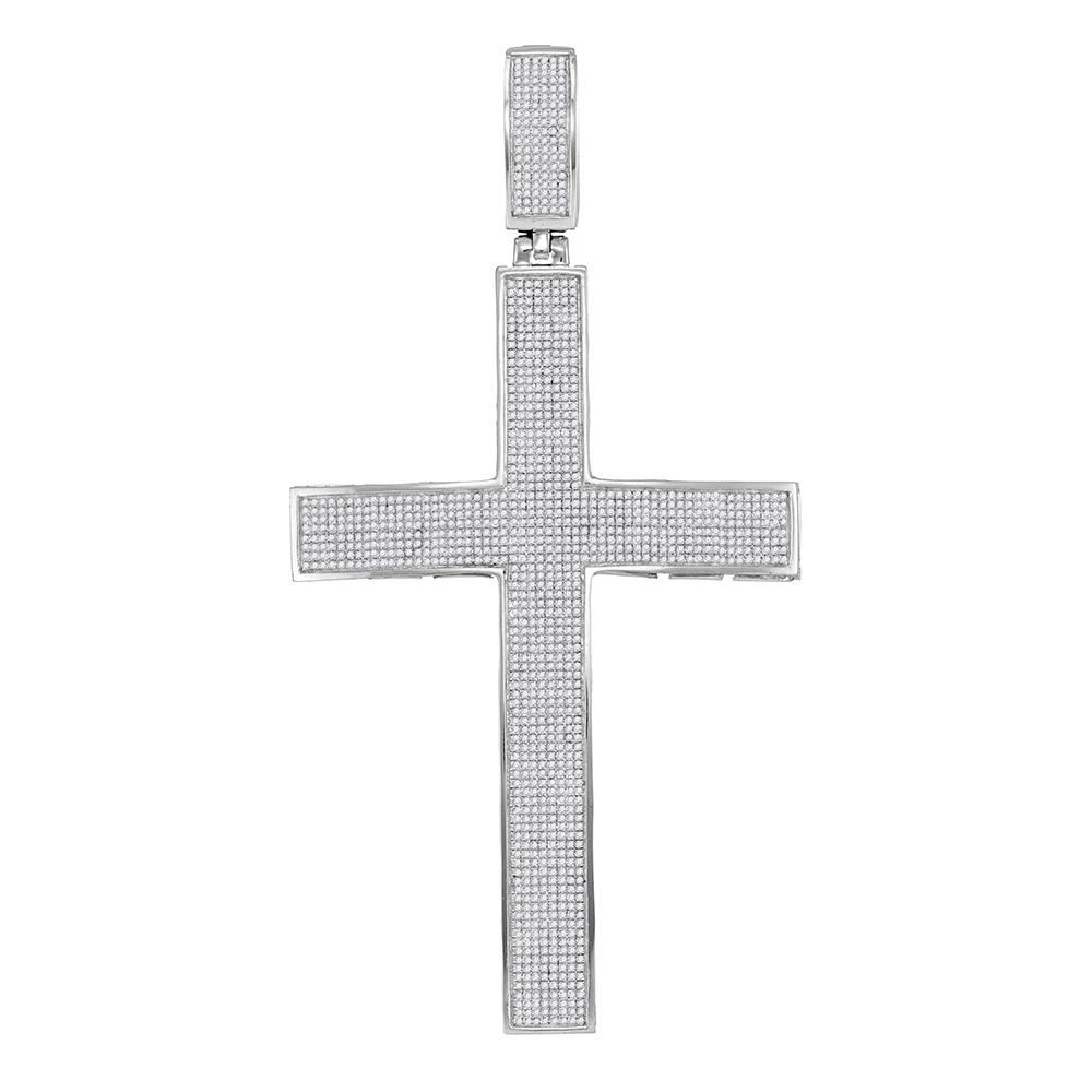 REF-209X9Y- SKU: GD66924 ---- 2.23 CTW Mens Pave-set Diamond Cross Crucifix Charm Pendant 10KT White Gold