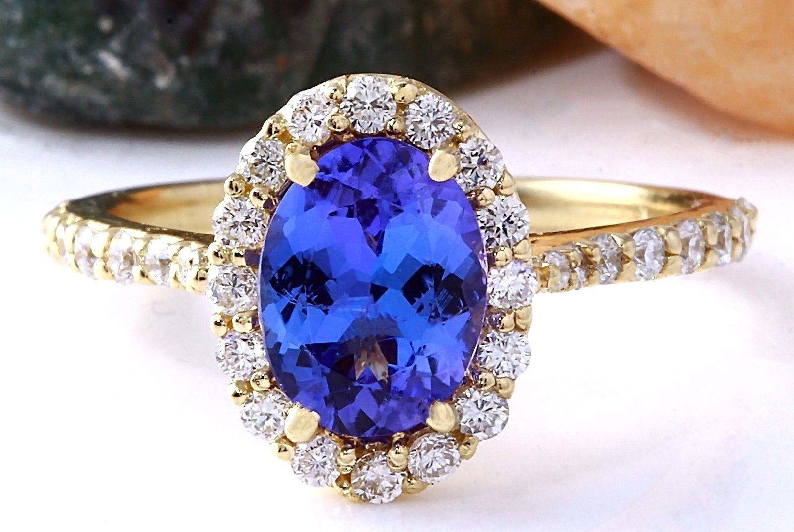 2.23 Carat Natural Tanzanite 18K Solid Yellow Gold Diamond Ring