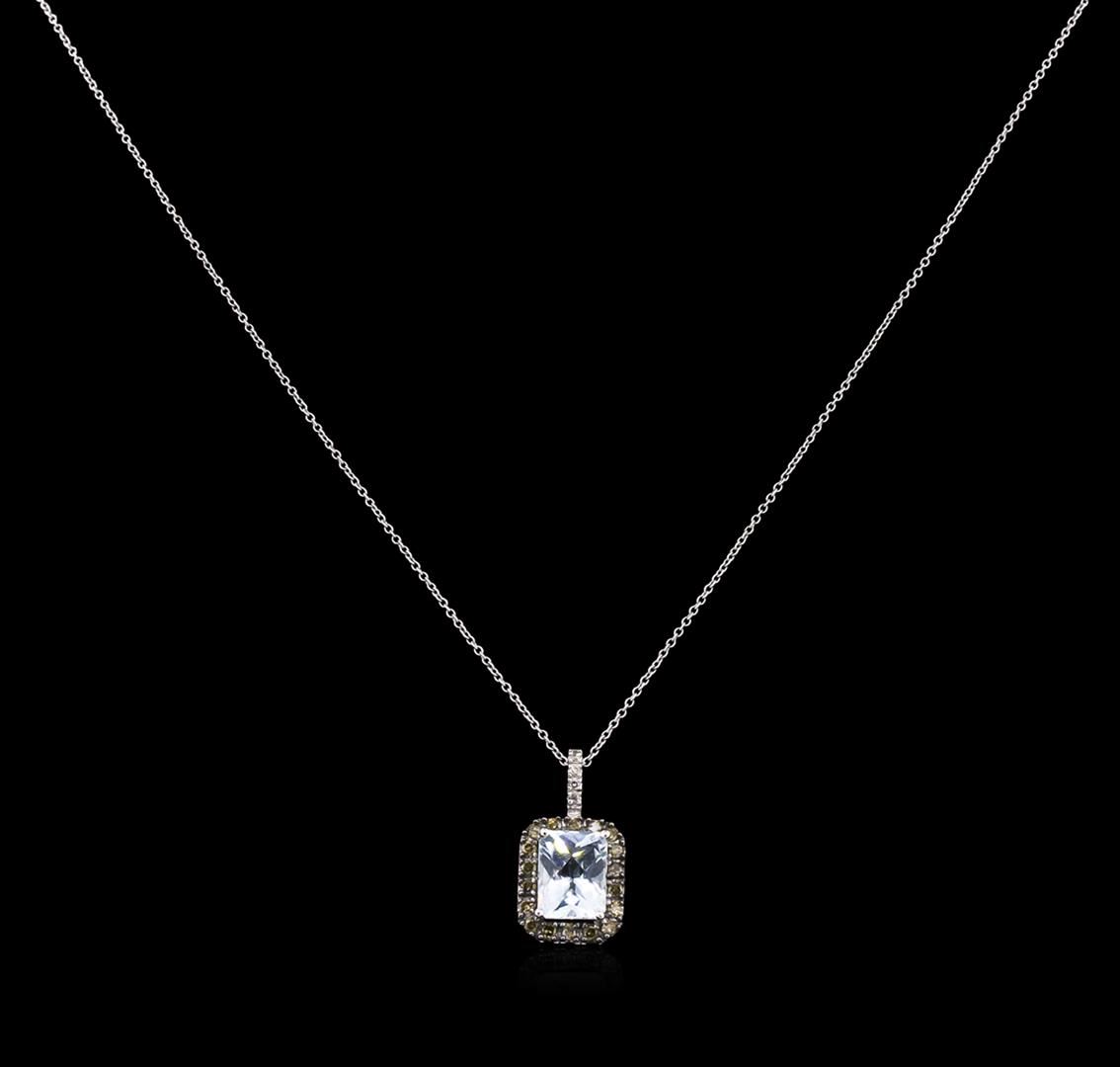 One pendant with chain featuring: 14KT white gold weighing 3.60 grams containing one aquamarine with a total weight of 2.23ct and white and brown diamonds with a total weight of 0.29ct.