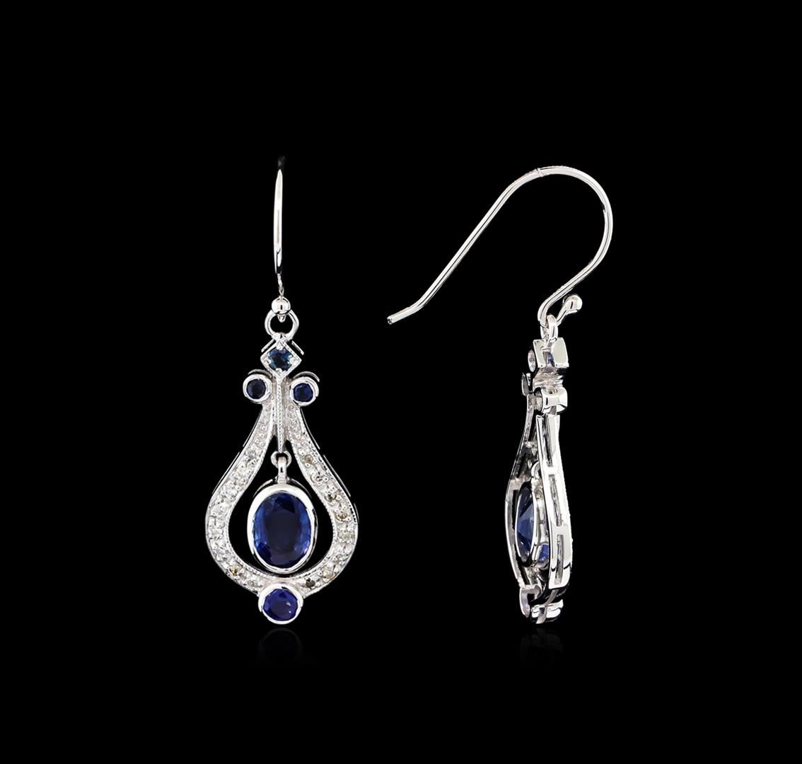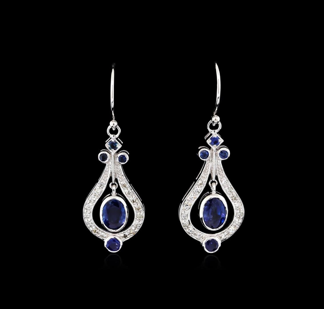 One pair of earrings featuring: 18KT white gold weighing 3.28 grams containing blue sapphires with a total weight of 2.23ct and diamonds with a total weight of 0.30ct.