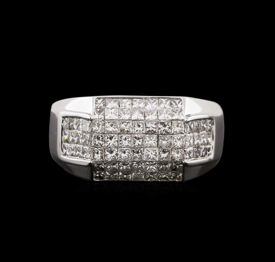 One electronically tested 14KT white gold man's cast fashion ring with a bright polish finish. Condition is new. Identified with markings of "14K". Containing: Seventy-three invisible set princess cut diamonds, measuring 1.90 x 1.80 x 1.20mm (depth est.) approximate total weight of 73 Stones = 2.23ct. Graded in the setting. Clarity: VS-2 to SI-2. Color: H - I. Cut: Good. Total Weight of Diamonds: 2.23ct. Total Weight of Ring: 7.50 gm. GAS Appraised at $9,800.00.