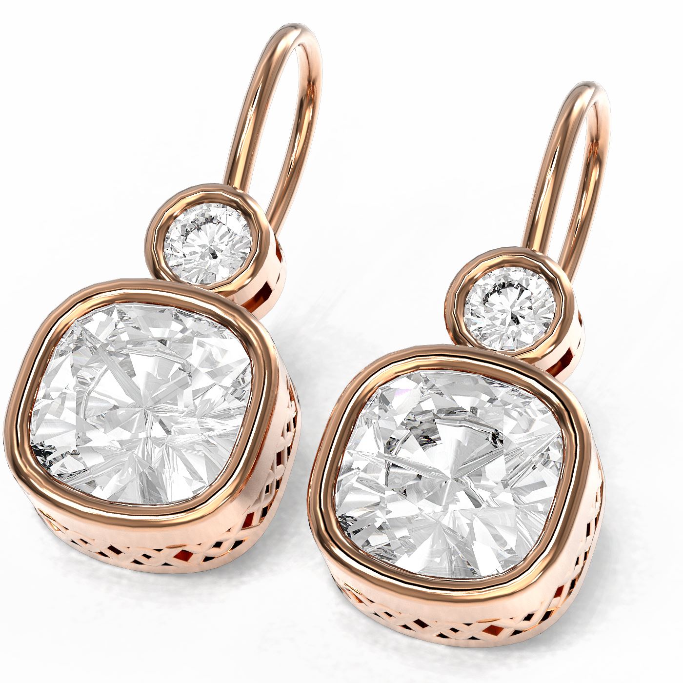 REF-576G8W - SKU: 60582 ---- 2.24 ctw Cushion Diamond Earrings 18K Rose Gold