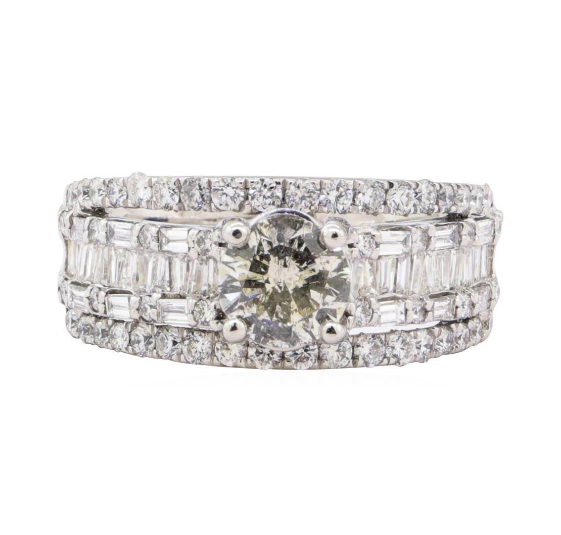 One electronically tested platinum ladies cast diamond unity ring. The featured diamond is set within parallel rows of diamonds, supported by diamond set shoulders, completed by a four millimeter wide band. Bright polish finish. Trademark is Orianne. Identified with markings of "PT950". Condition is new, good workmanship. Containing: One prong set round brilliant cut diamond, measuring 6.30 - 6.20 x 3.60mm (depth est.) approximate weight of 0.92ct. Graded in the setting. Clarity I-1 Color I Thirty-Six channel set baguette cut diamonds, measuring from 2.00 x 1.00 x 0.85mm (depth est.) to 2.10 x 1.10 x 0.94mm (depth est.) approximate total weight of 36 Stones = 0.67ct. Graded in the setting. Clarity VS-1 to SI-1 Color F - G Fifty-Two bead set round brilliant cut diamonds, measuring 1.70 - 1.20 x 0.94mm (depth est.) approximate total weight of 52 Stones = 0.65ct. Graded in the setting. Clarity VS-1 to SI-1 Color F - G Total Weight of Diamonds 2.24 ct. Total Weight of Unity Ring 11.60 gm Estimated Retail Value $ 18,800.00 US