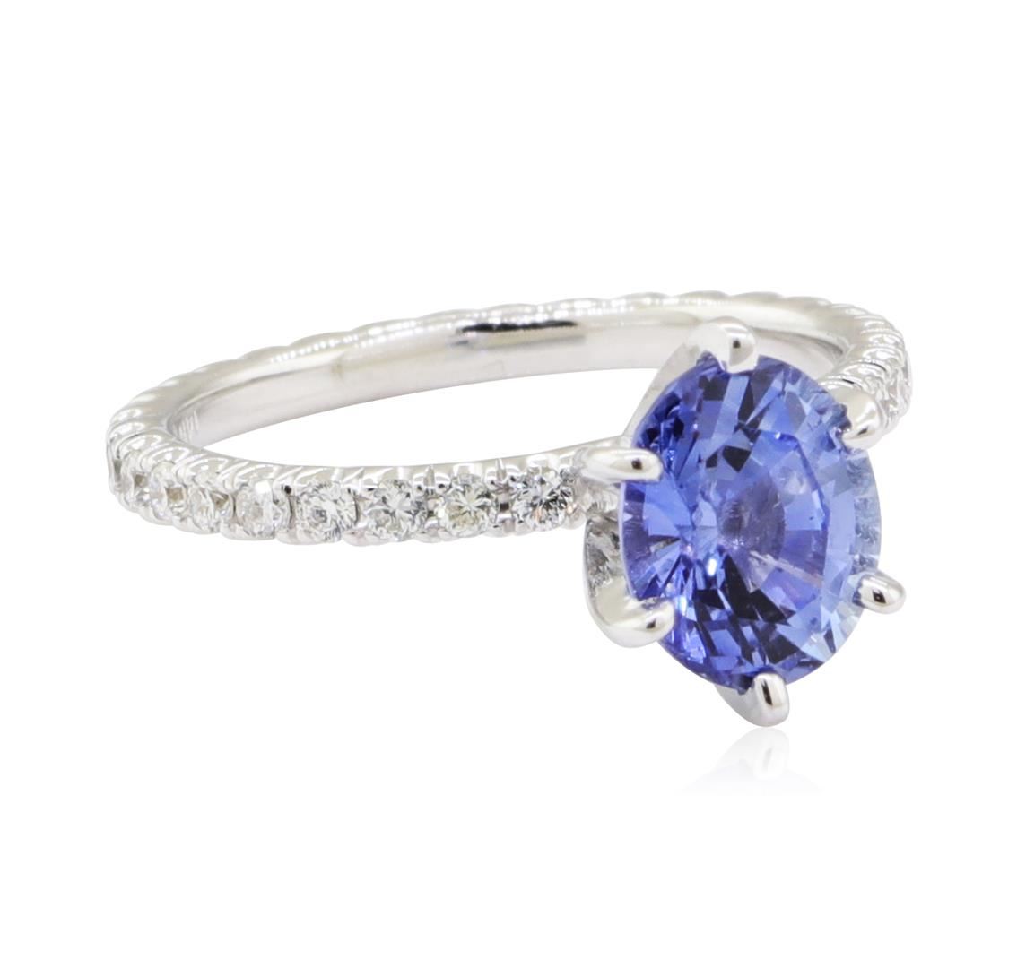 One ring featuring: 14KT white gold weighing 2.2 grams containing one sapphire weighing 1.74ctw and diamonds weighing 0.50ctw. The diamonds are set in an eternity motif.