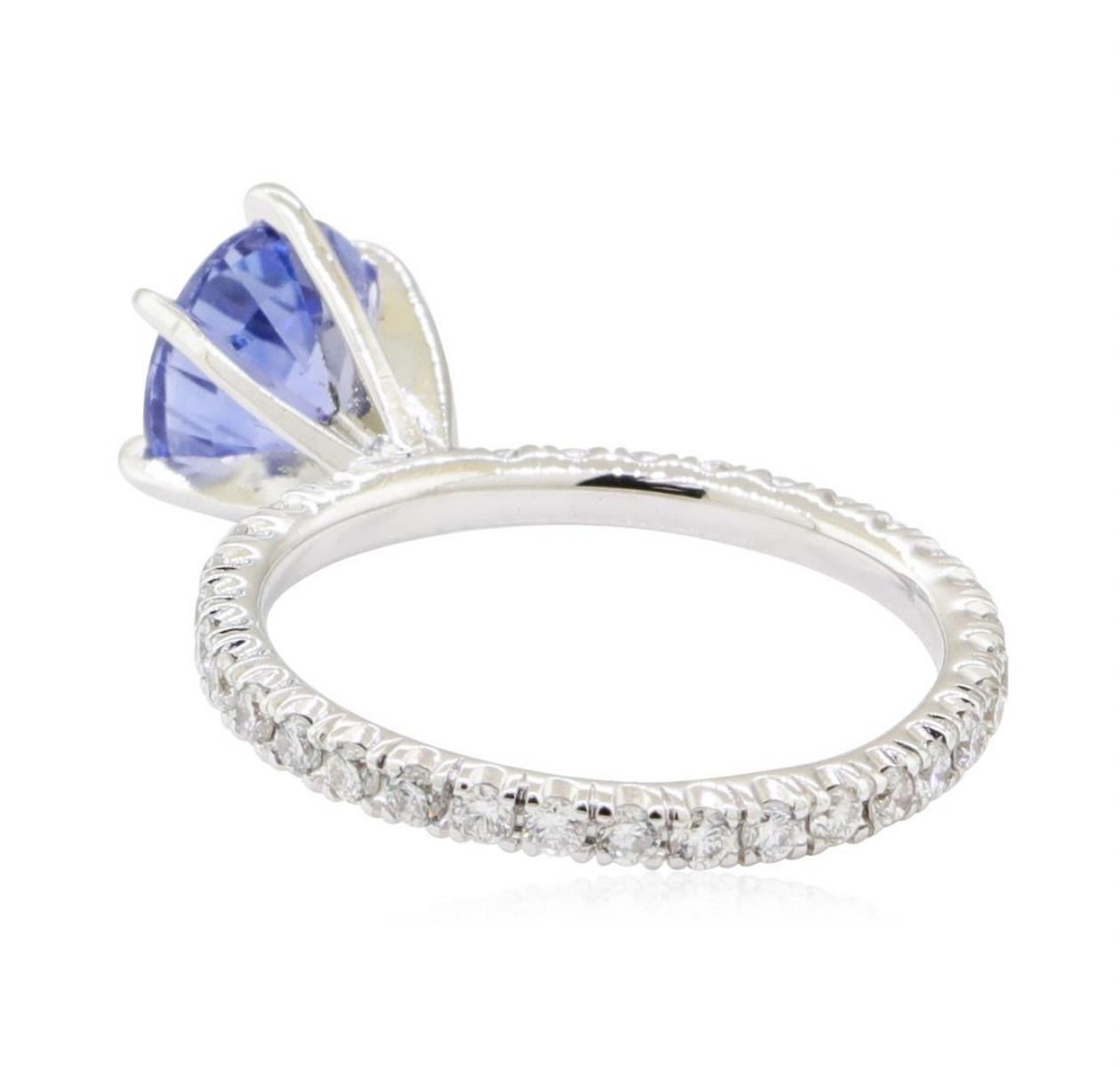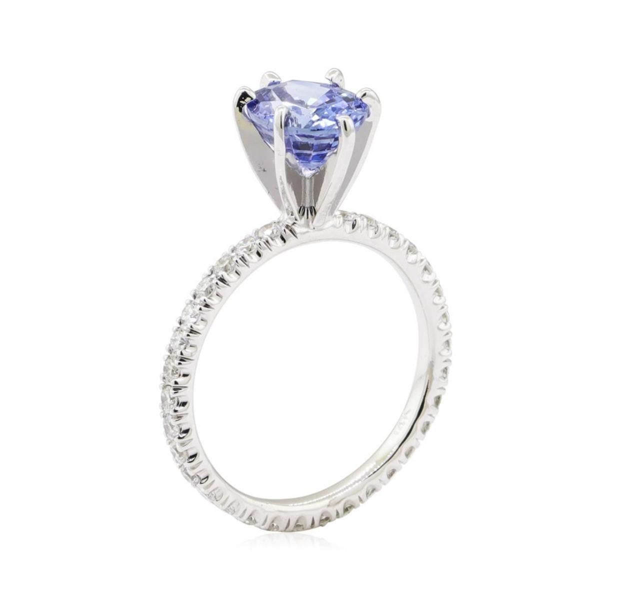 One ring featuring: 14KT white gold weighing 2.2 grams containing one sapphire weighing 1.74ctw and diamonds weighing 0.50ctw. The diamonds are set in an eternity motif.
