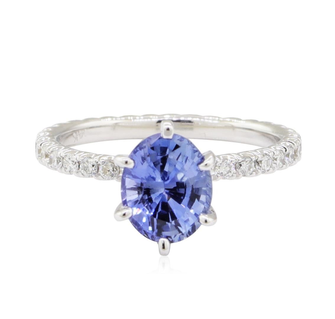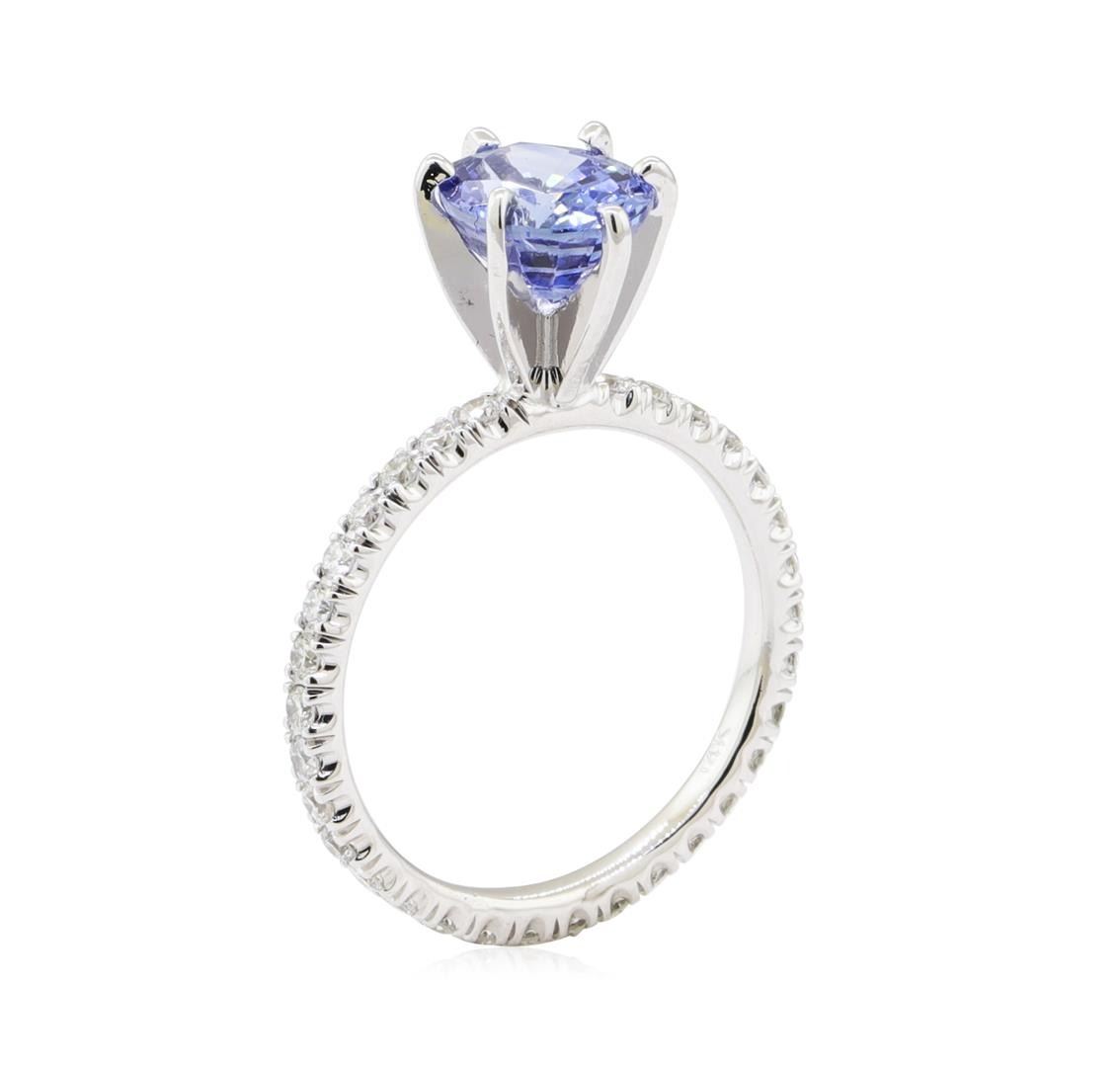 One ring featuring: 14KT white gold weighing 2.2 grams containing one sapphire weighing 1.74ctw and diamonds weighing 0.50 ctw. The diamonds are set in an eternity motif.