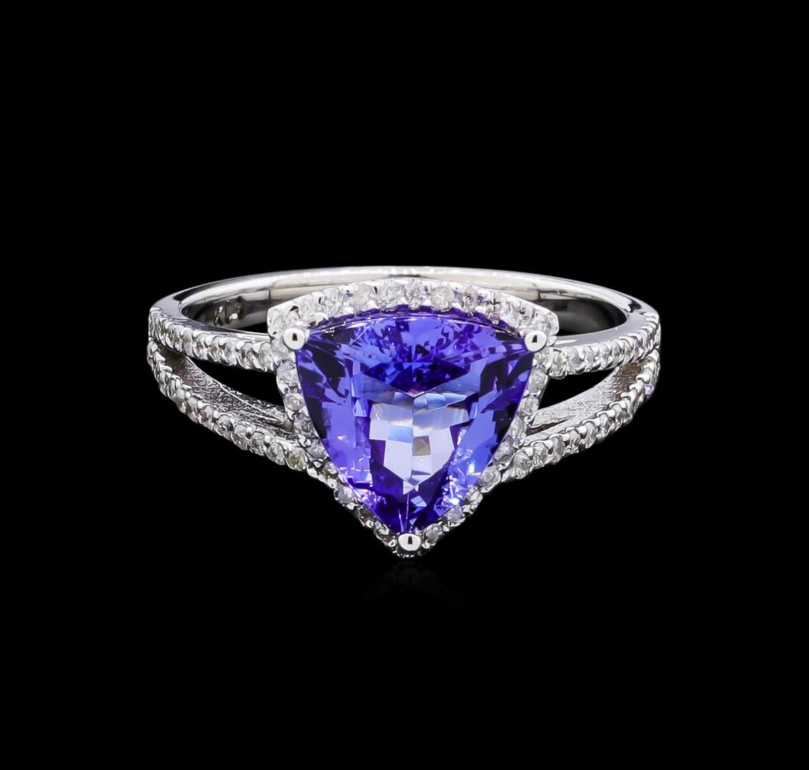 One ring featuring: 14KT white gold weighing 3.25 grams containing one tanzanite with a total weight of 2.24ct and side diamonds with a total weight of 0.40ct.