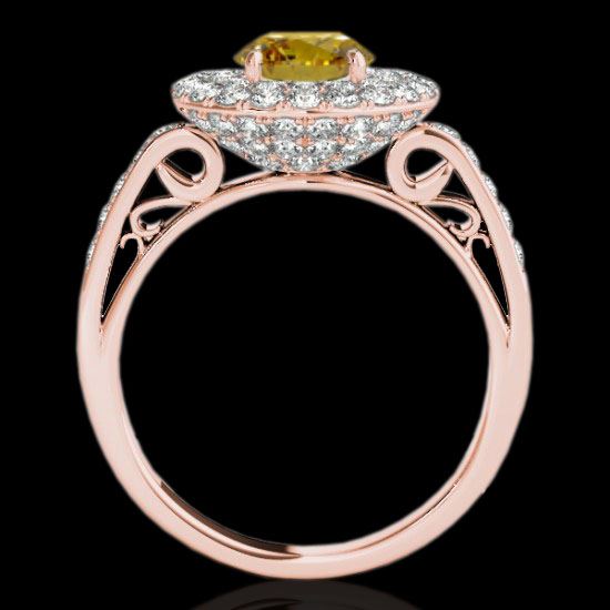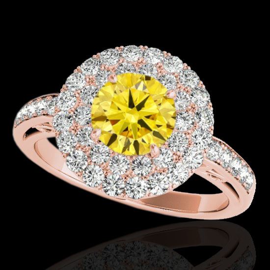 REF-218K2W -34210 ---- 2.25 CTW Certified Si/I Fancy Intense Yellow Diamond Solitaire Halo Ring 10K Rose Gold ---- Luxury Designer Brand Ring Appraised at $14,400 Certificate Number US34210 10k Rose gold, Ring Size is 7, Ring measuring approx. Uniform, weighing in total approx. 8.7 grams. Made in the USA and is stamped 10k, Main stone 1 carat total weight containing 1 pieces of Intense Fancy Yellow color with SI quality Round shape cut Diamond , Stone #2 1.25 carat total weight containing 78 pieces of H-I color with VS/SI quality Round shape cut Diamond