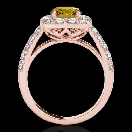 REF-229W3F -33642 ---- 2.25 CTW Certified Si/I Fancy Intense Yellow Diamond Solitaire Halo Ring 10K Rose Gold ---- Luxury Designer Brand Ring Appraised at $13,850 Certificate Number US33642 10k Rose gold, Ring Size is 7, Ring measuring approx. Uniform, weighing in total approx. 7 grams. Made in the USA and is stamped 10k, Main stone 1 carat total weight containing 1 pieces of Intense Fancy Yellow color with SI quality Round shape cut Diamond , Stone #2 1.25 carat total weight containing 32 pieces of H-I color with VS/SI quality Round shape cut Diamond